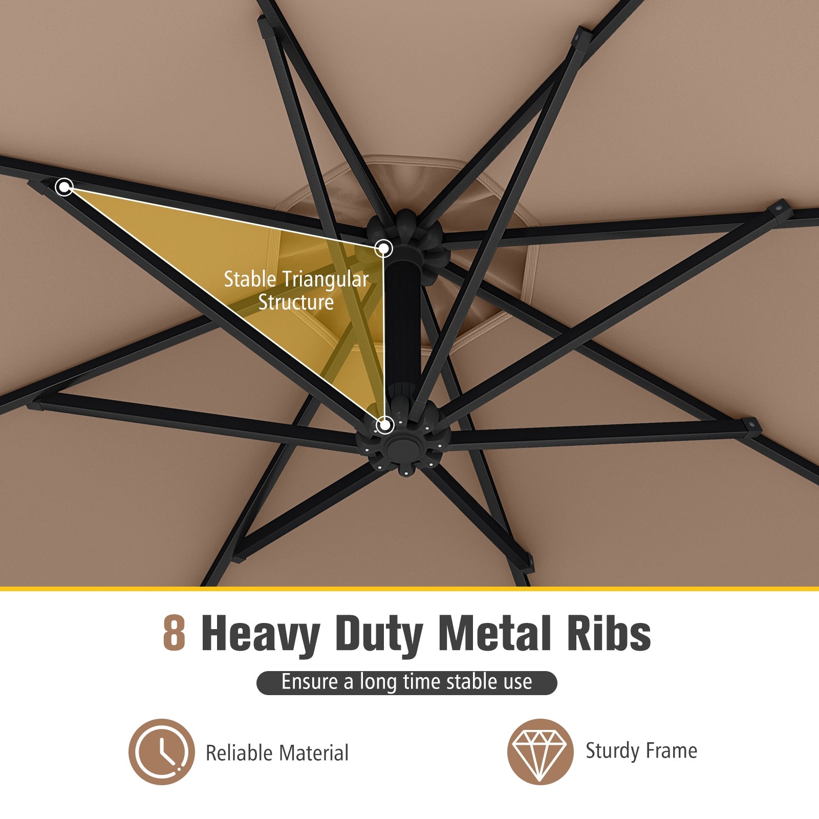 10 Feet Offset Hanging Umbrella with Base and Infinite Tilt-Coffee