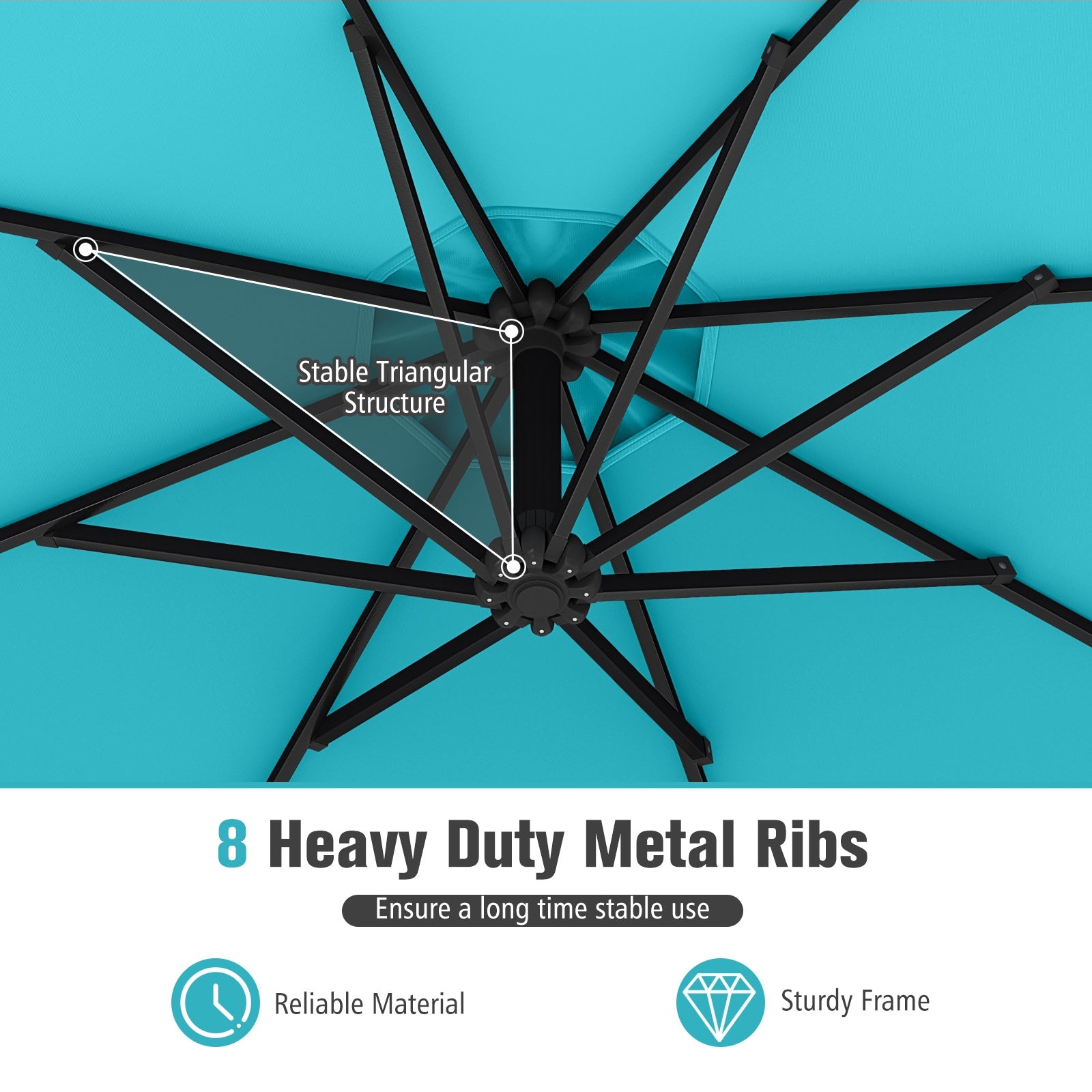 ● Supported by 8 robust metal ribs ensure excellent stability and wind resistance