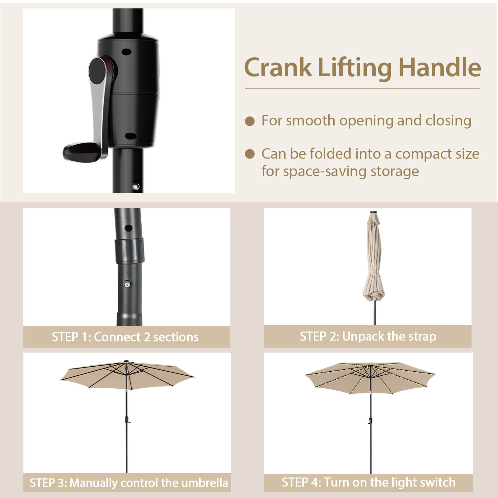 10 Feet Patio Umbrella with 112 Solar Lights and Crank Handle-Beige