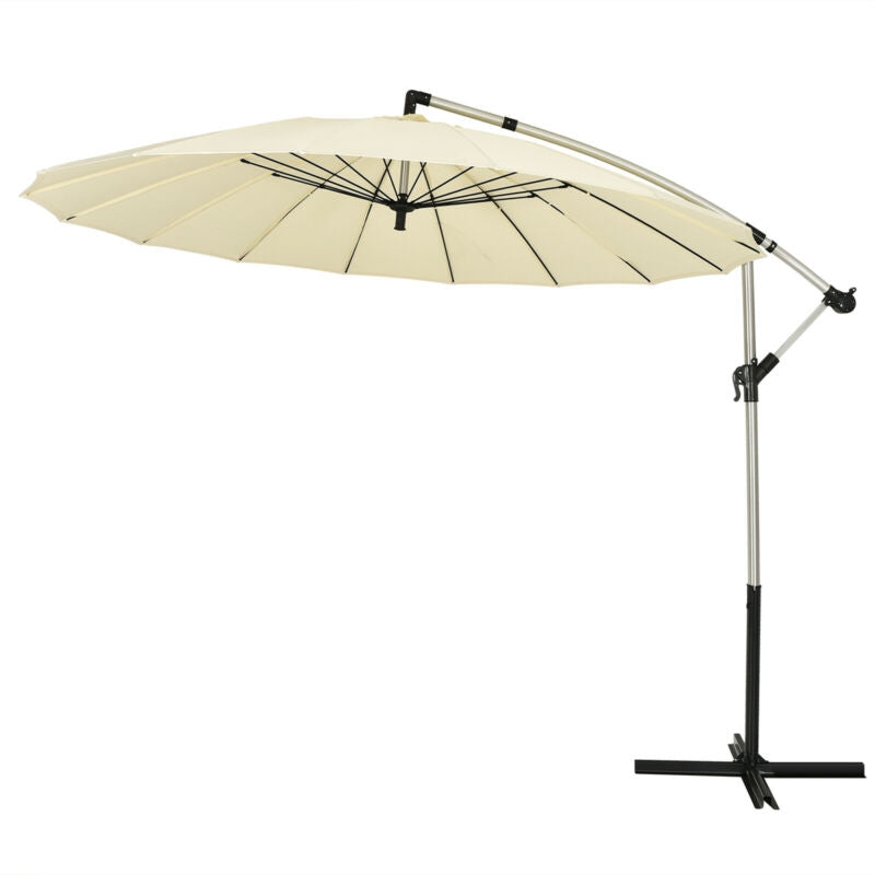 10 Feet Patio Offset Umbrella Market Hanging Umbrella for Backyard Poolside Lawn Garden-Beige