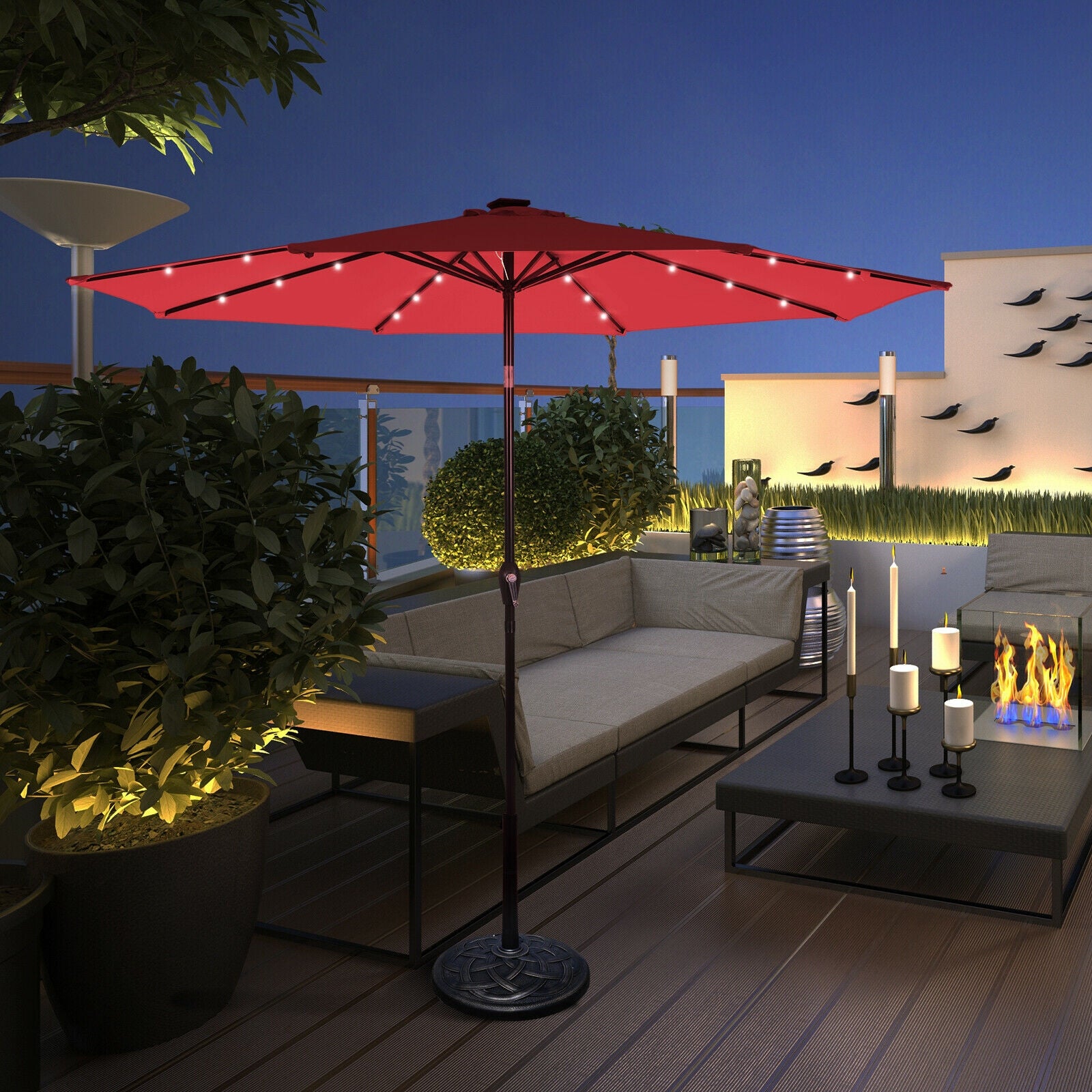 - 1 x Patio umbrella with solar lights
