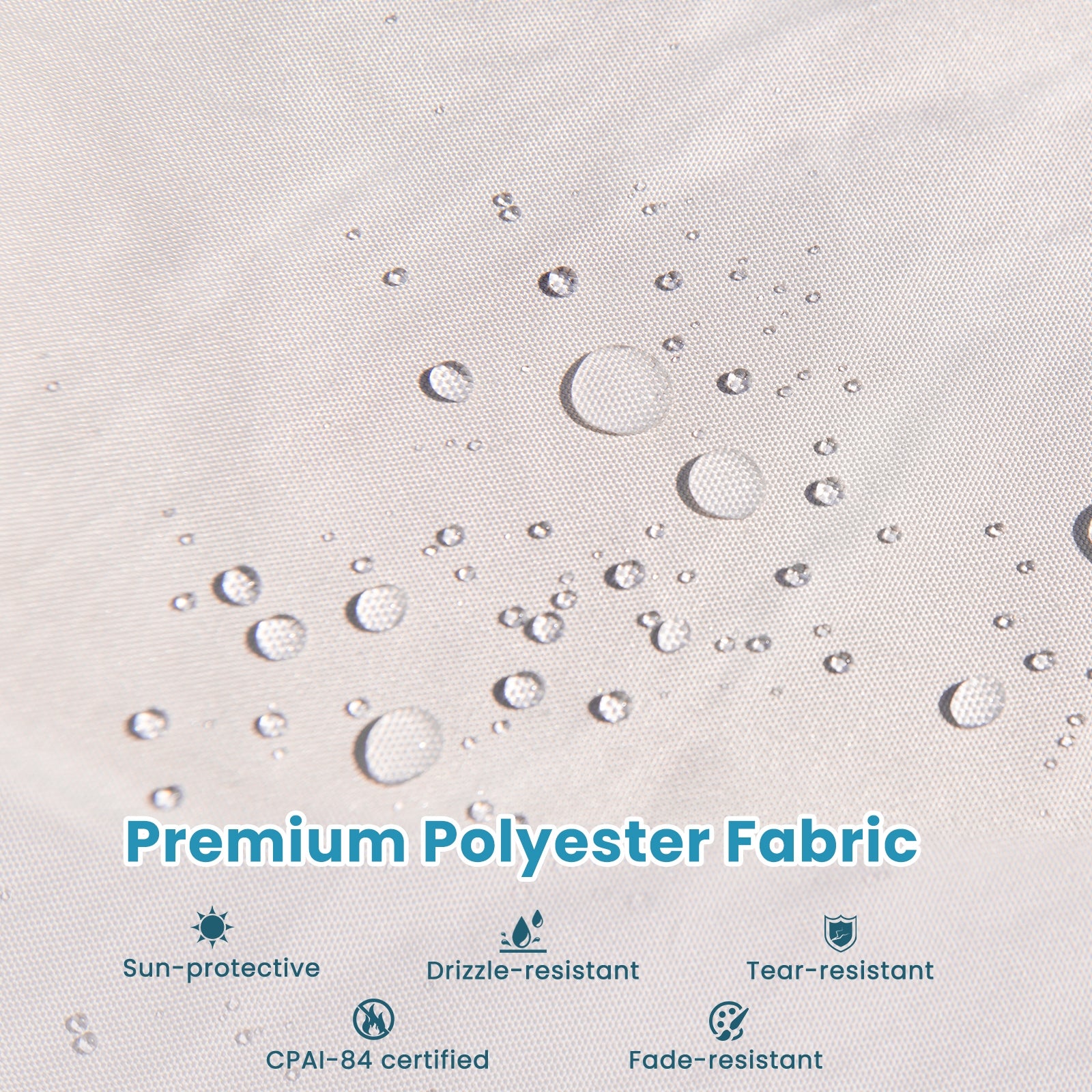 ● Premium and Reliable Material: The sunshade canopy is crafted of premium polyester fabric which is drizzle-resistant sun-protective fade-resistant and tear-resistant ensuring long-term outdoor use. And it meets CPAI-84 flame-resistant standards for better safety.