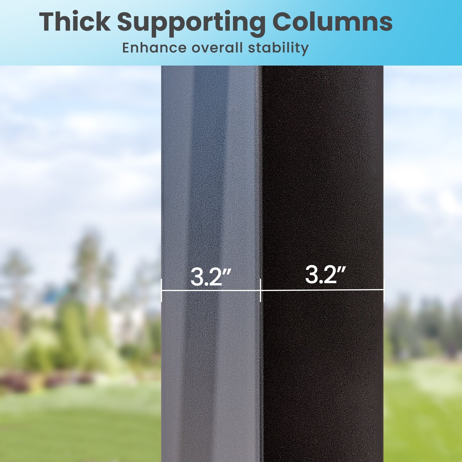 ● Adopts 3.2" x 3.2" thick supporting columns sturdy and reliable