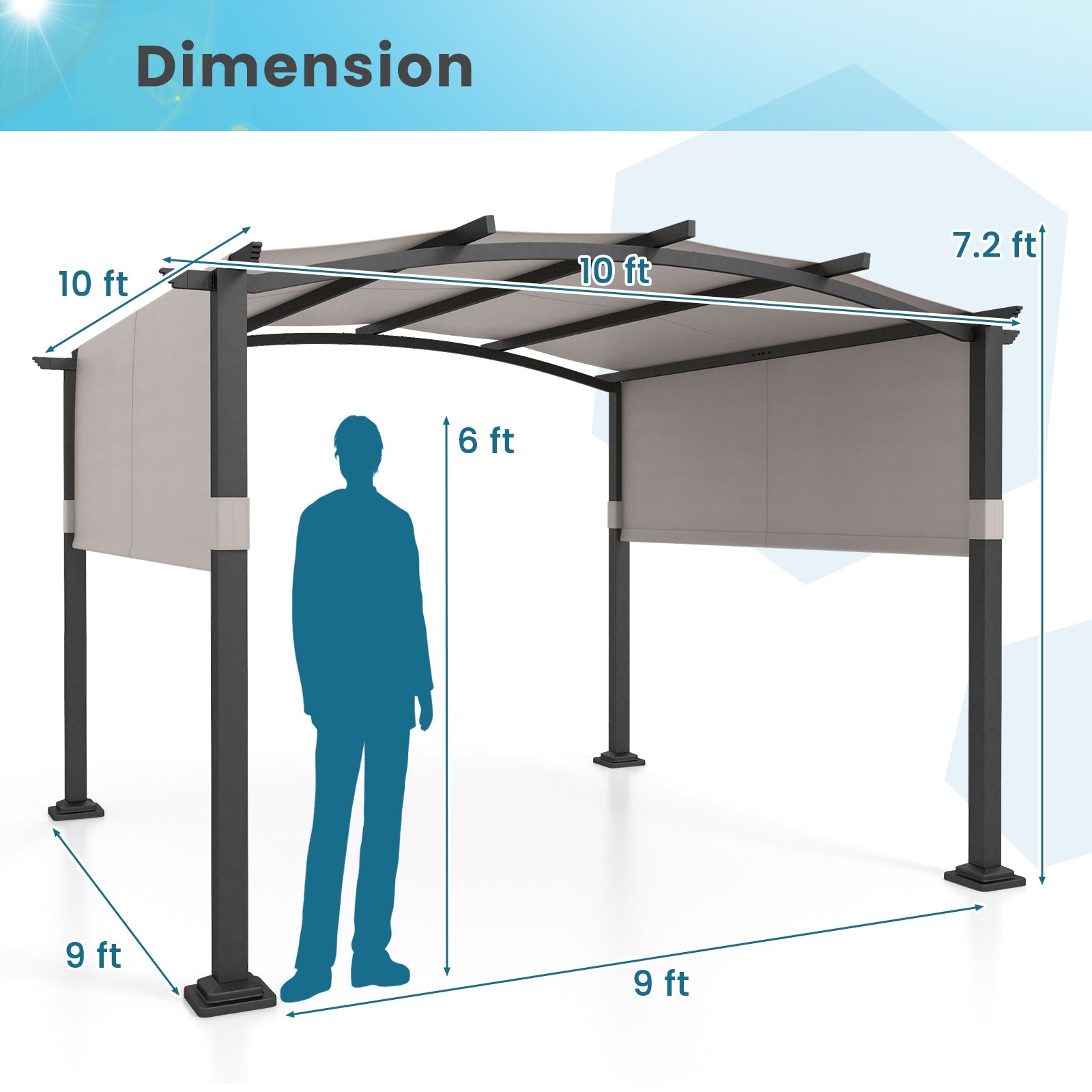 ● Spacious Sunshade Area: This outdoor pergola measures 10 x 10 x 7.2 ft (L x W x H) provides ample shade for a complete outdoor dining set or wicker sofa set. It is ideal for family gatherings social events with friends or even used as an outdoor grilling gazebo.