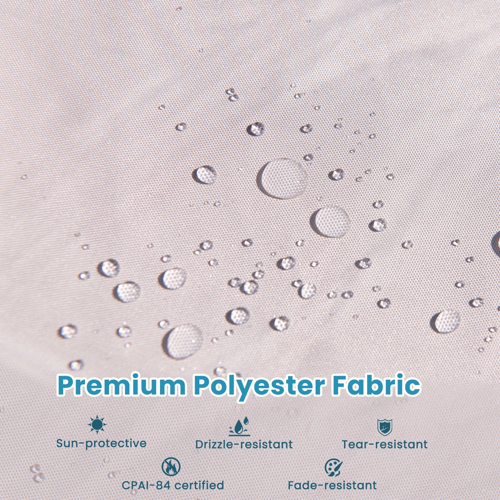 ● Premium and Reliable Material: The sunshade canopy is crafted of premium polyester fabric which is drizzle-resistant sun-protective fade-resistant and tear-resistant ensuring long-term outdoor use. And it meets CPAI-84 flame-resistant standards for better safety.