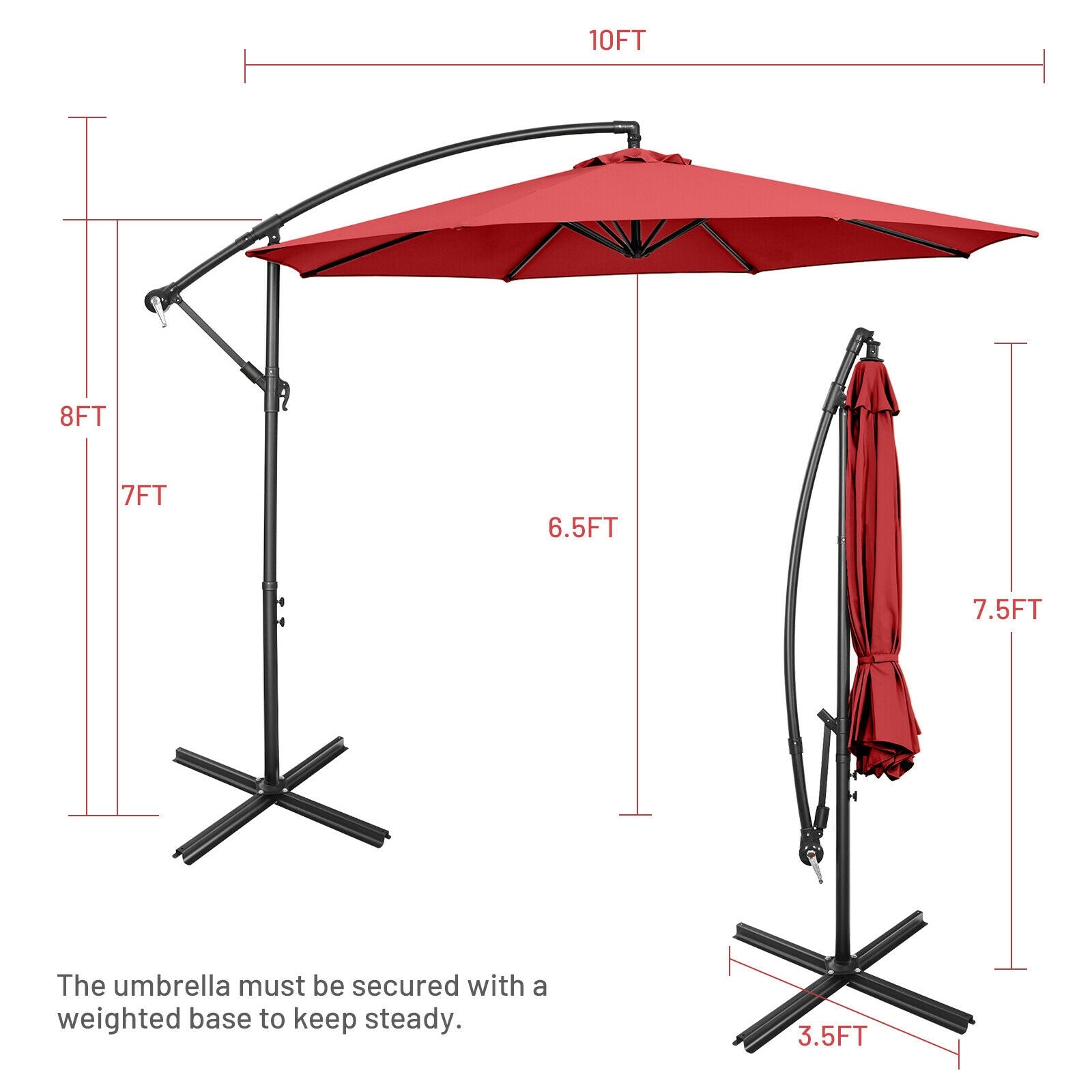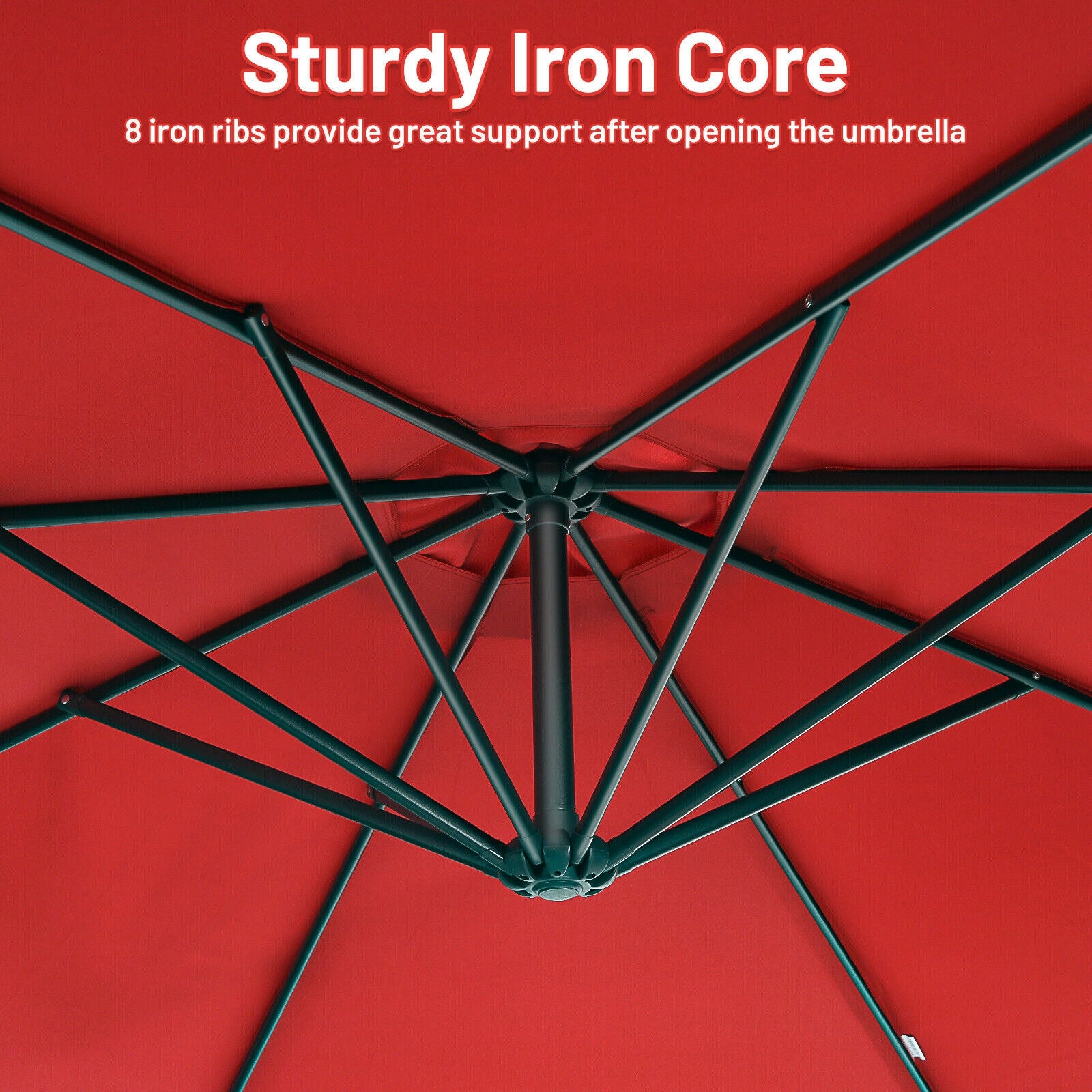 10FT Offset Umbrella with 8 Ribs Cantilever and Cross Base Tilt Adjustment-Red