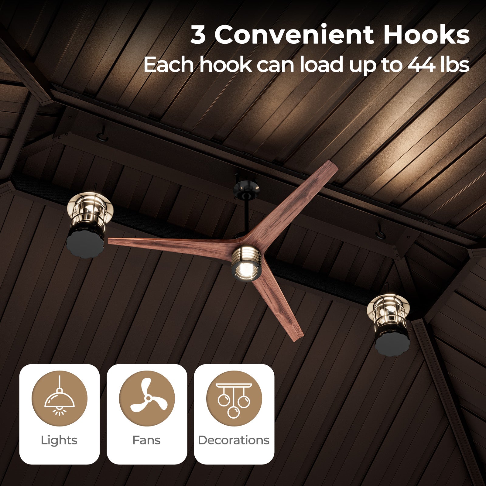 ● Ceiling Hooks and Wide Application: The metal pavilion is equipped with 3 ceiling hooks for hanging lights fans or decorations and each hook can load up to 20 kg/44 lbs. Moreover whether it's used as a shelter for outdoor events such as weddings birthdays parties or provides a lounge area in the courtyard garden poolside terrace this versatile gazebo can be a perfect choice.