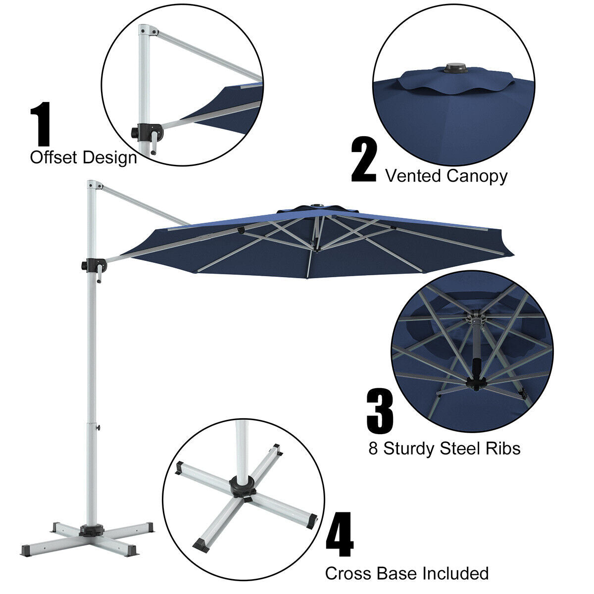 11 Feet Patio Offset Cantilever Umbrella 360° Rotation Aluminum Tilt-Navy