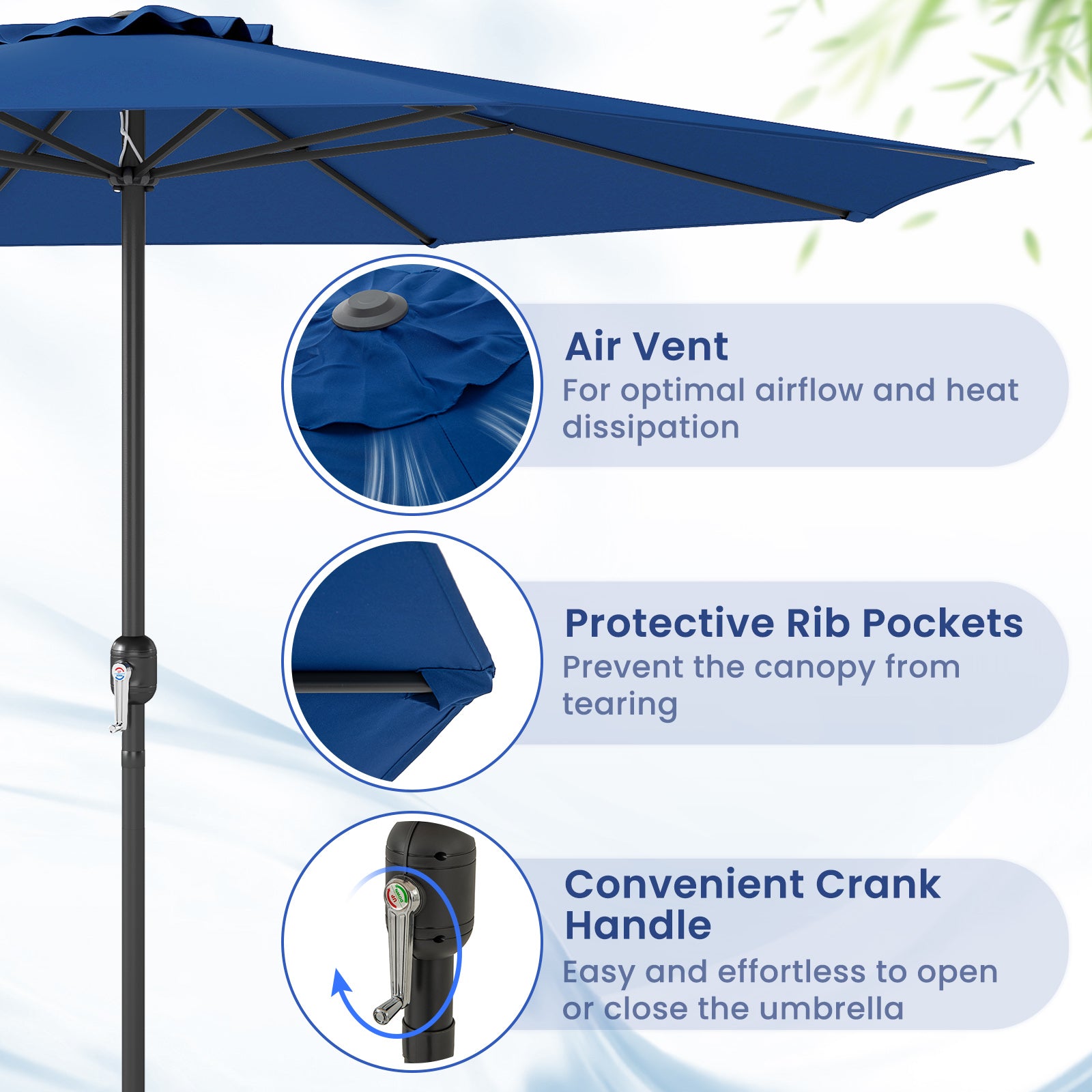 12 Feet Patio Umbrella with Crank Handle and 8 Sturdy Ribs-Navy