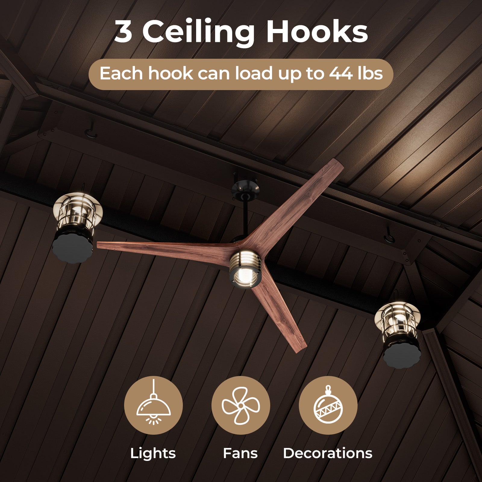 ● Ceiling Hooks and Wide Applications: The metal pavilion is equipped with 3 ceiling hooks for hanging lights fans or decorations and each hook can load up to 44 lbs. Moreover its versatile design makes it suitable for various occasions such as backyard parties weddings BBQs or as a shelter for your hot tub or outdoor furniture.