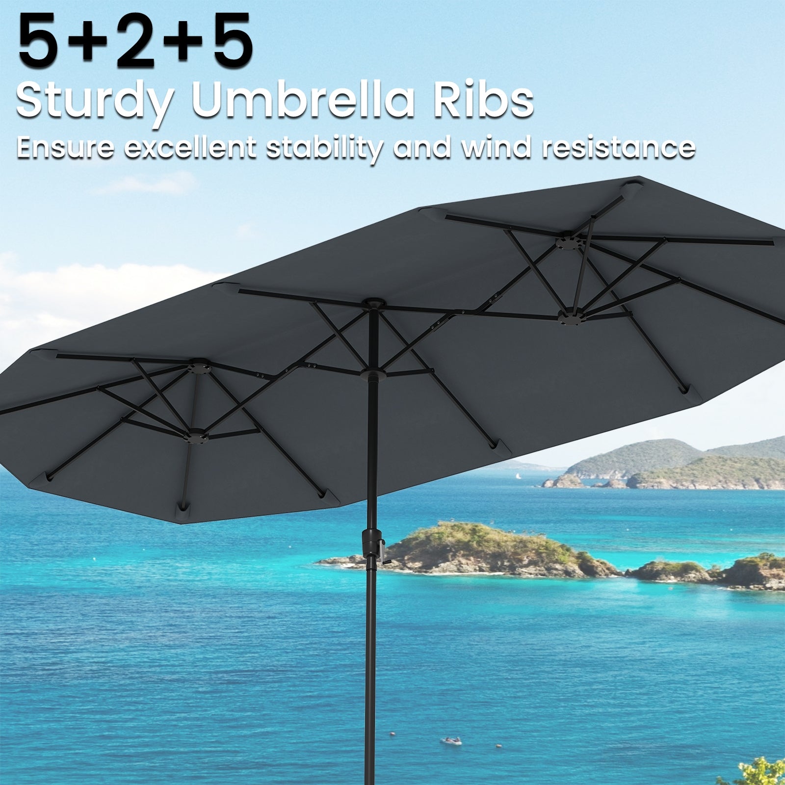 ● Extra-Large Coverage: This double-sided patio umbrella measures 13 x 7 x 7.3 ft/392 x 212 x 222 cm (L x W x H) offering a spacious shade area for your outdoor gatherings. With a 1.5"/38 mm diameter umbrella pole it is perfect for pairing with outdoor dining tables.