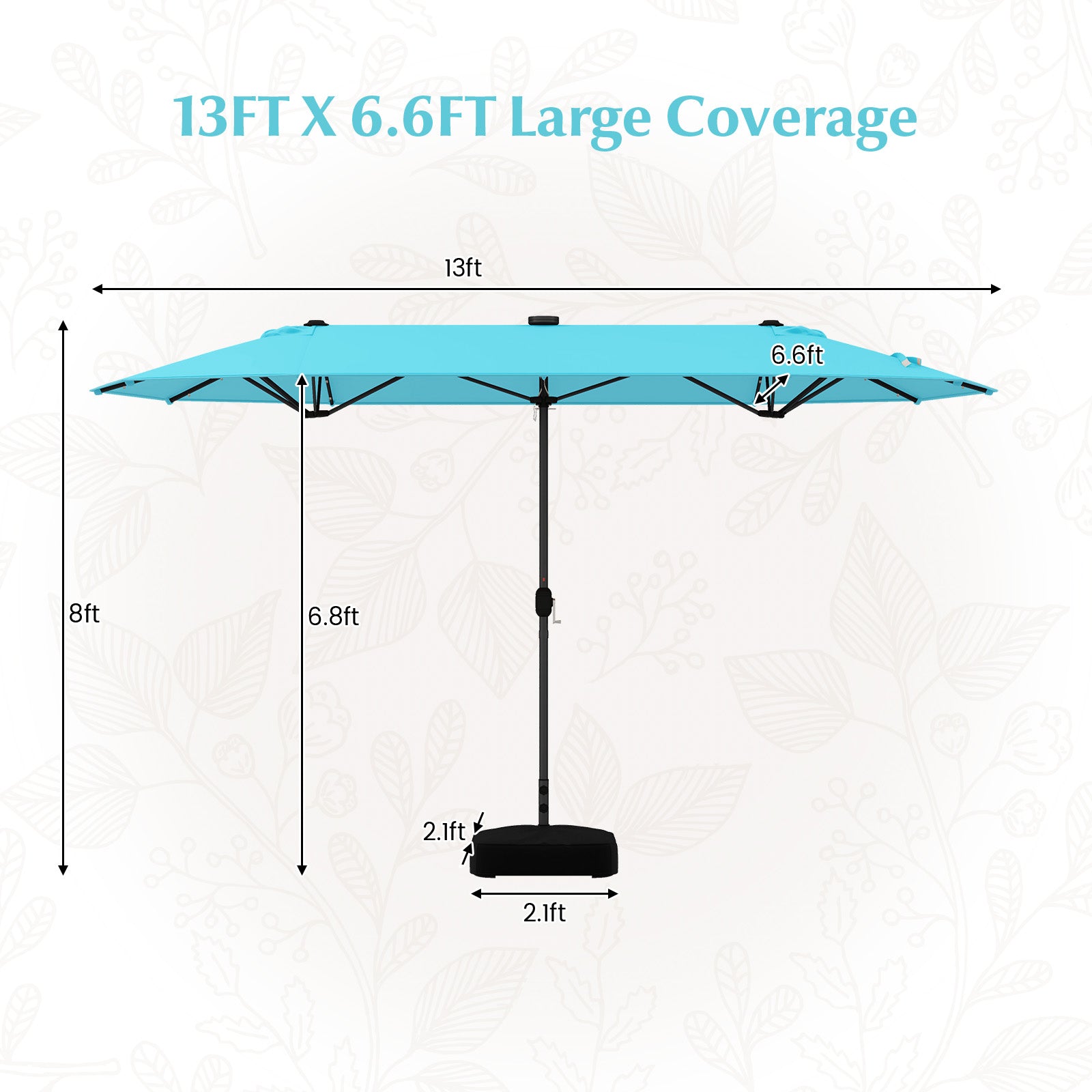13FT Double-sided Patio Umbrella with Solar Lights for Garden Pool Backyard-Turquoise