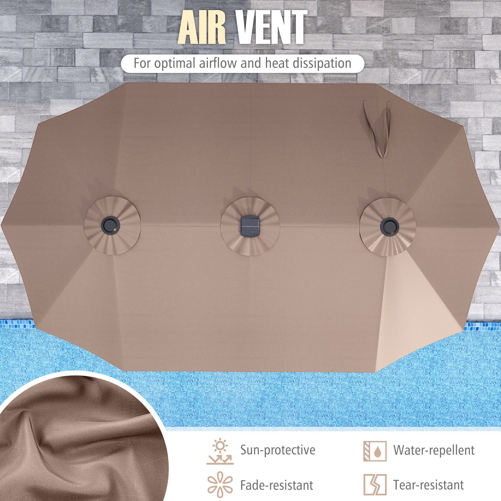 15.5 FT Extra-Large Patio Umbrella with LED Solar Lights and Crank Handle-Brown