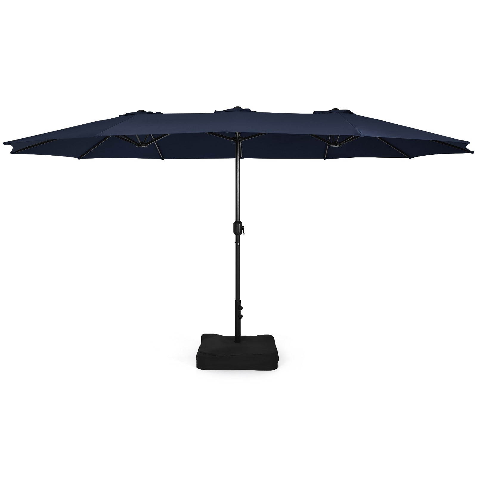 15 Feet Double-Sided Twin Patio Umbrella with Crank and Base-Navy