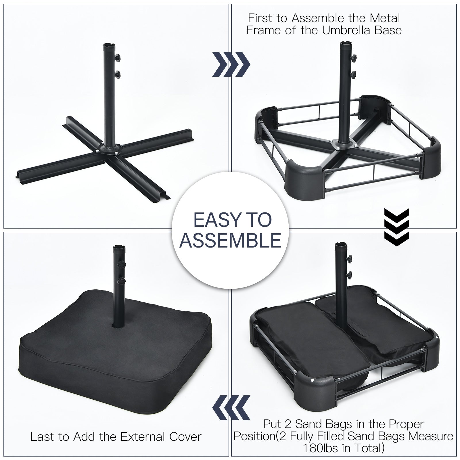 ● Extra Base Offers Firm Support: This patio umbrella comes with an extra enhanced stand constructed by a sturdy metal frame and 2 weighted sandbags (sand not included). The fully filled sandbags can weigh 180lbs which enhances great support and prevent the umbrella from tipping over. And an external cover will perfectly wrap them for a better look.