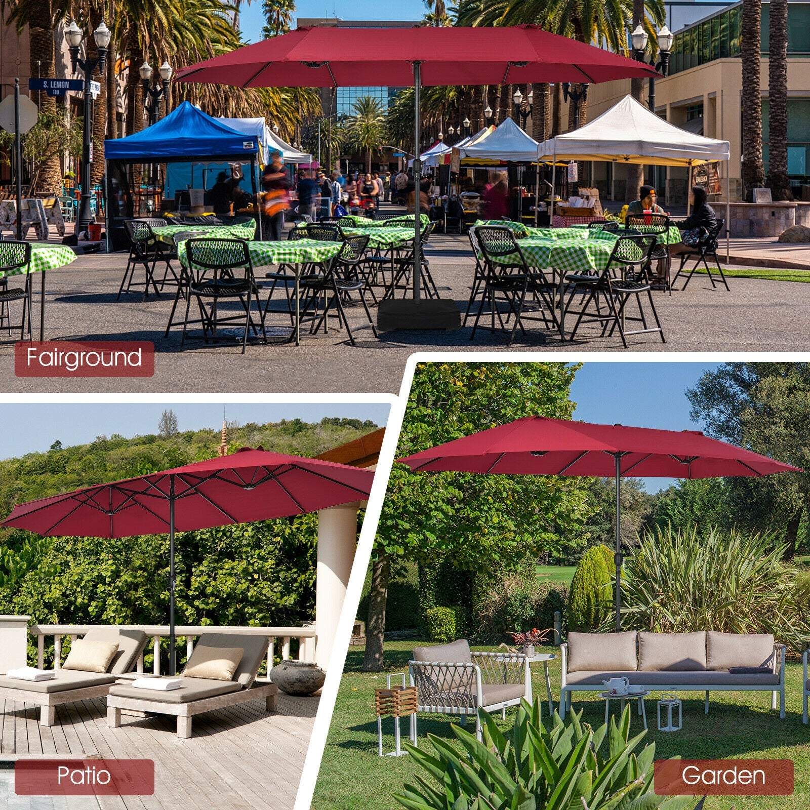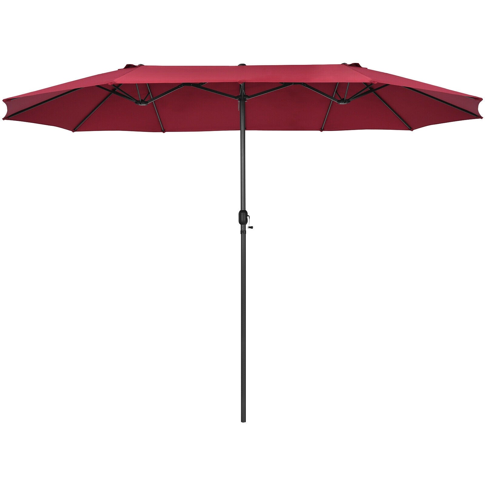 15 Feet Patio Double-Sided Umbrella with Hand-Crank System-Dark Red
