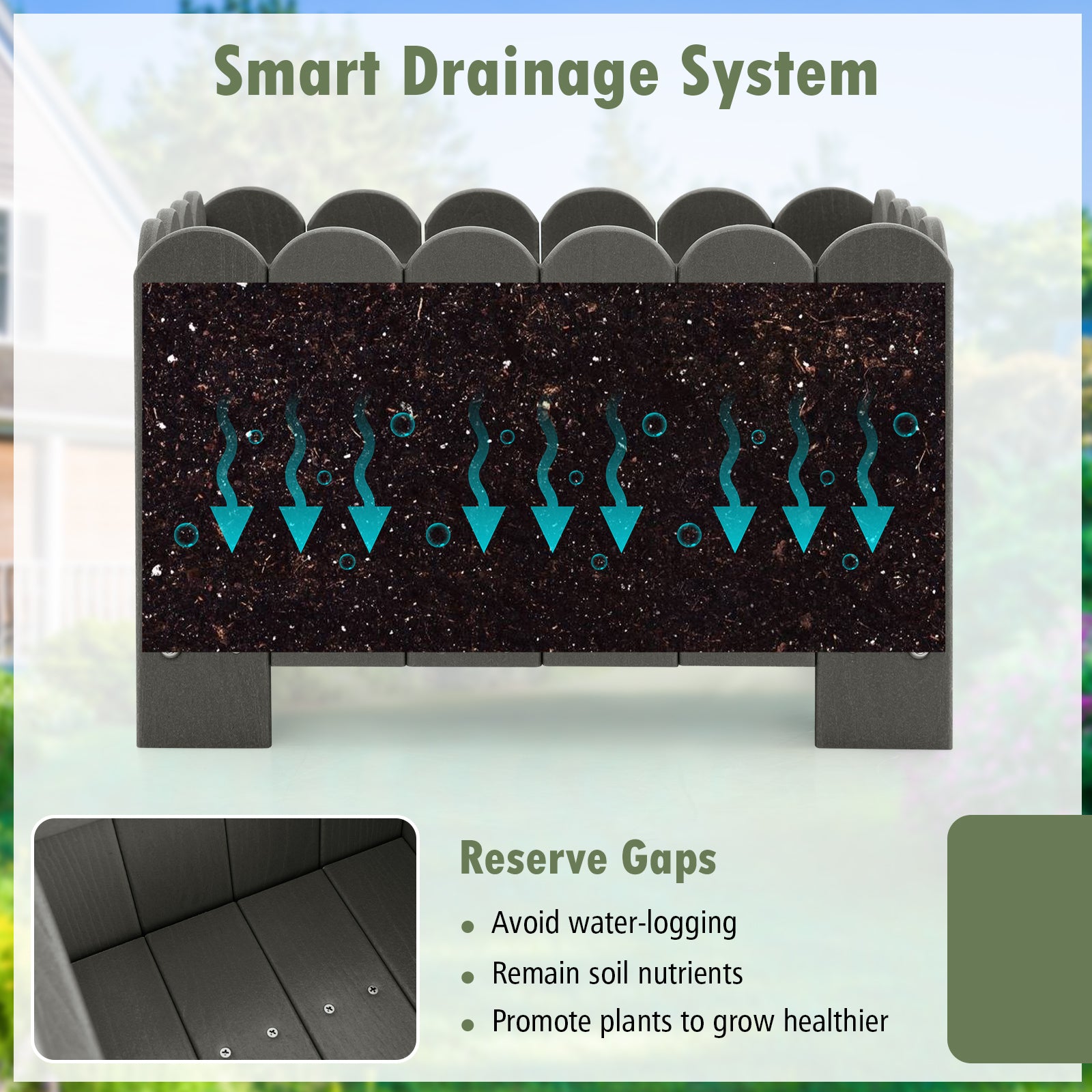 Wide Range of Application: With simulated wood grain and fence design the elevated flower box set seamlessly blends into any outdoor setting adding a touch of rustic elegance to your garden balcony and deck patio and living room.