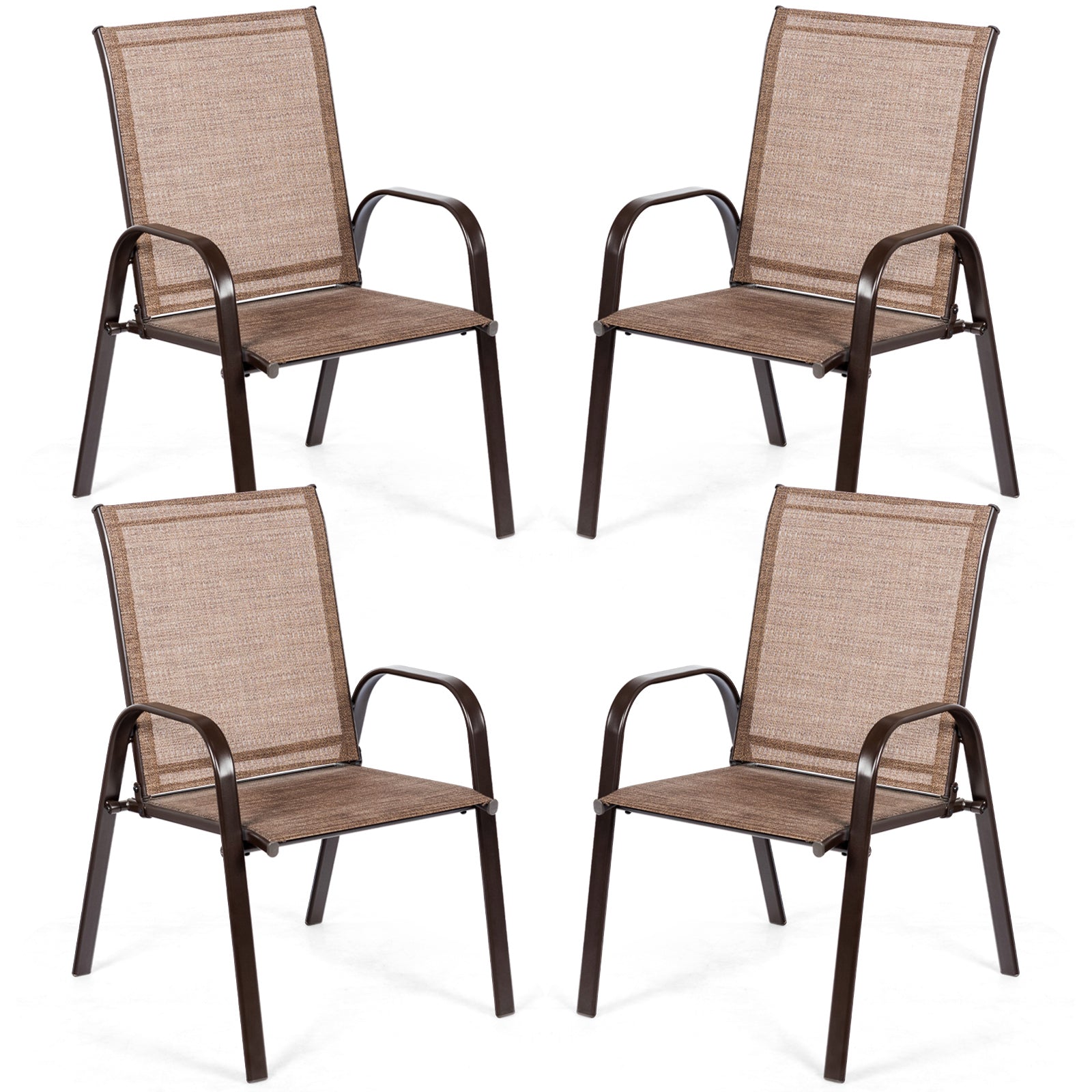 2 Pieces Patio Outdoor Dining Chair with Armrest-Brown
