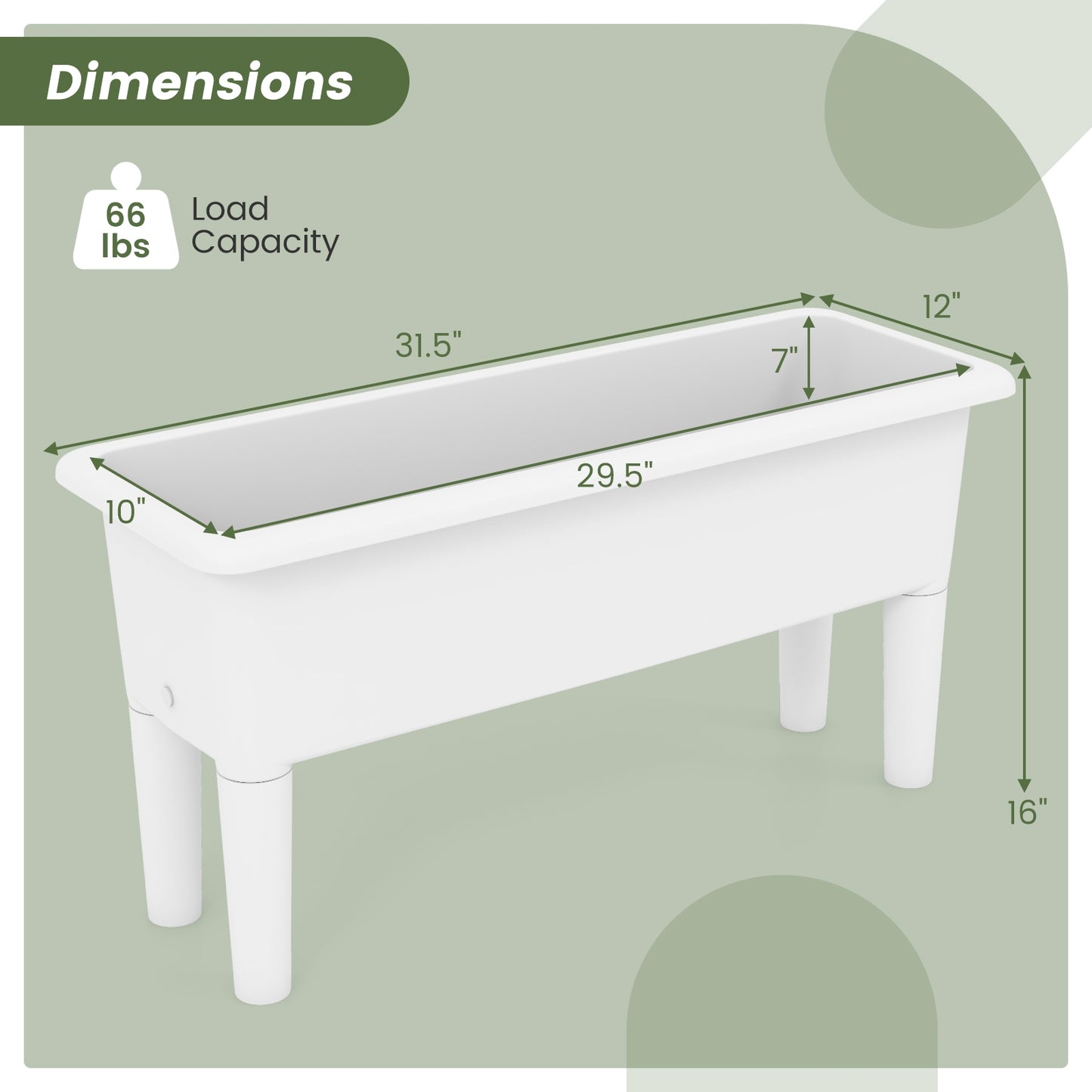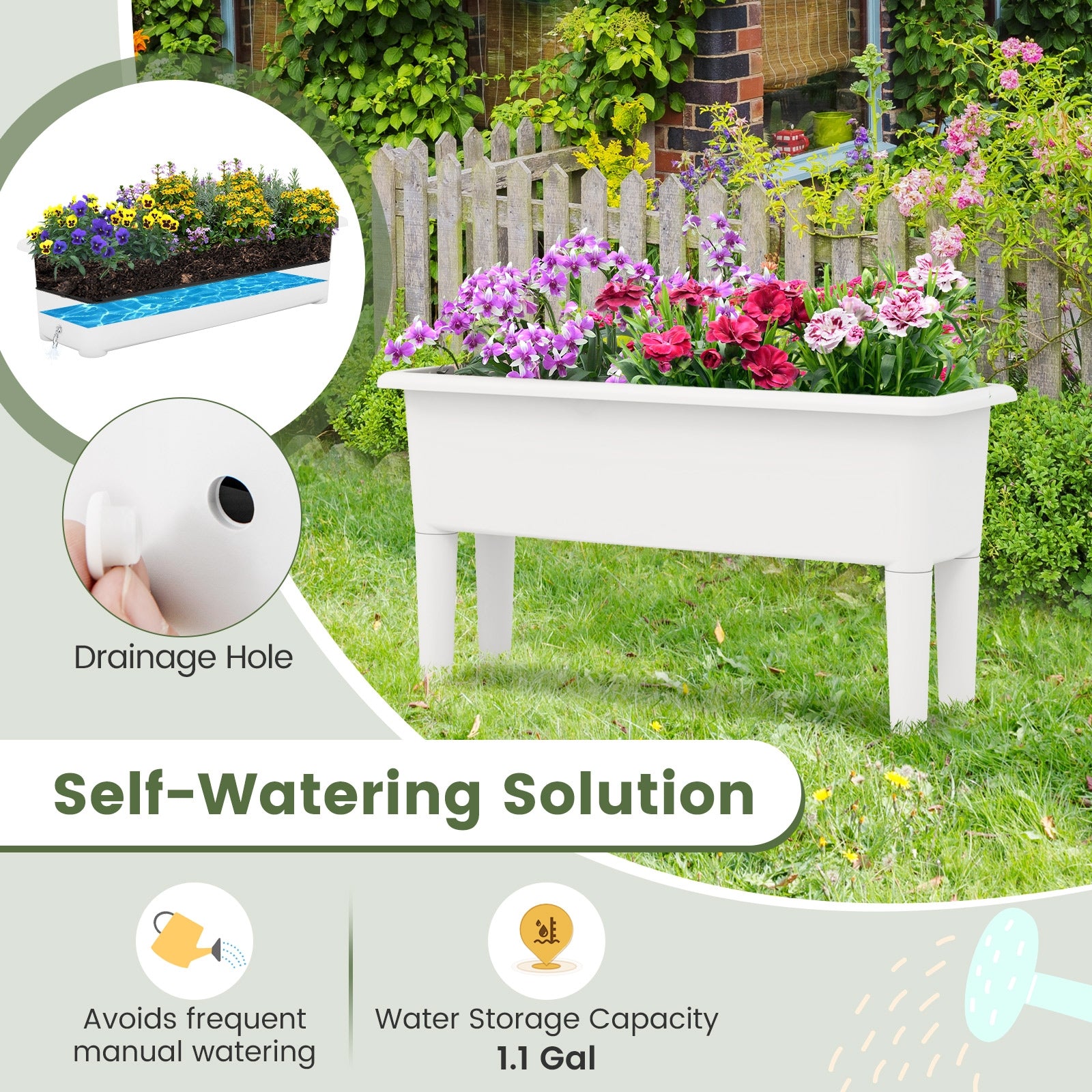 2 PCS Raised Garden Beds Self-Watering Planter Box with Detachable Legs and Drainage Hole-White