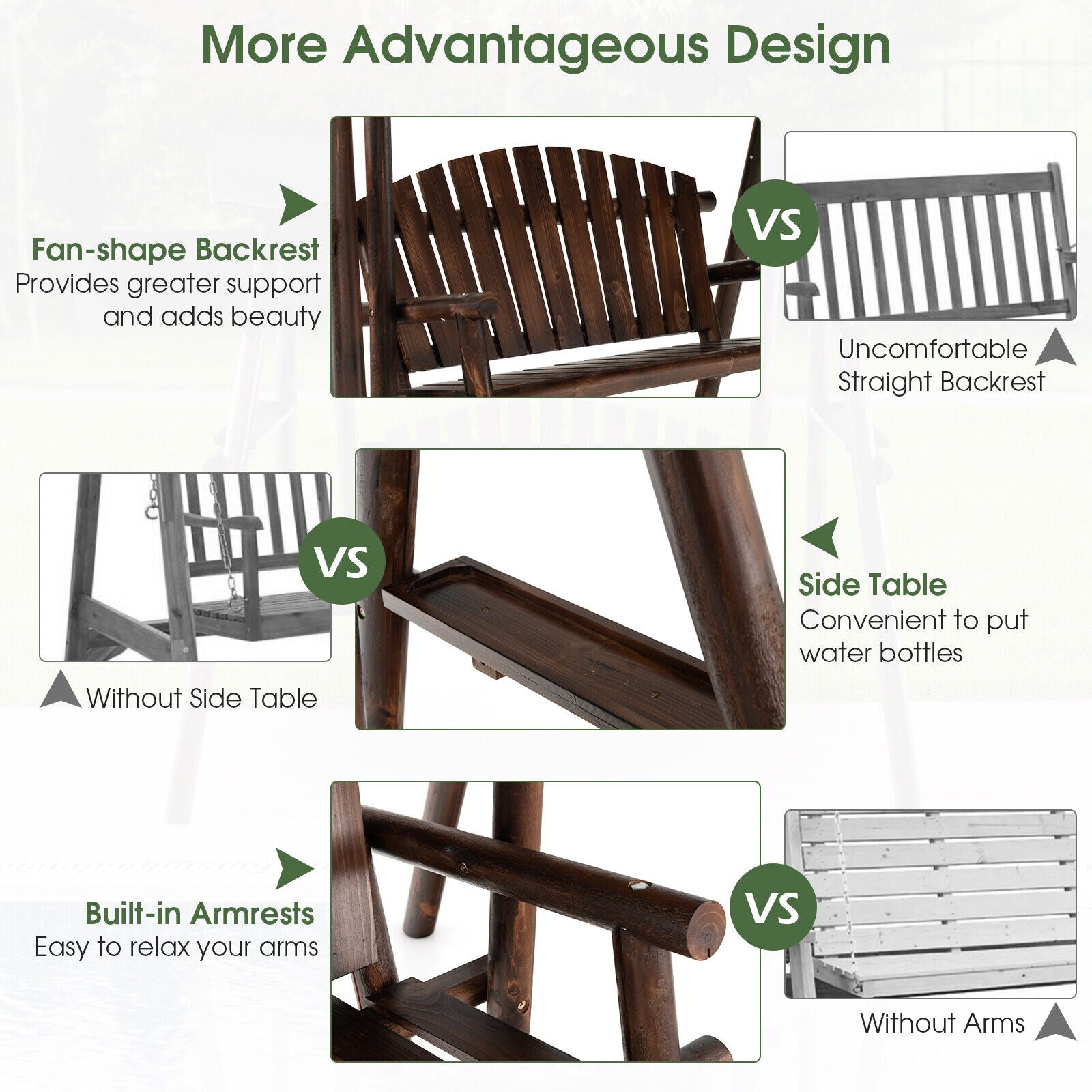 ● Rustic Outdoor Decor: Designed with natural color and elegant scalloped backrest the large swing bench chair features beautiful and rustic style to match with various outdoor places such as your backyard garden porch poolside lawn poolside etc.