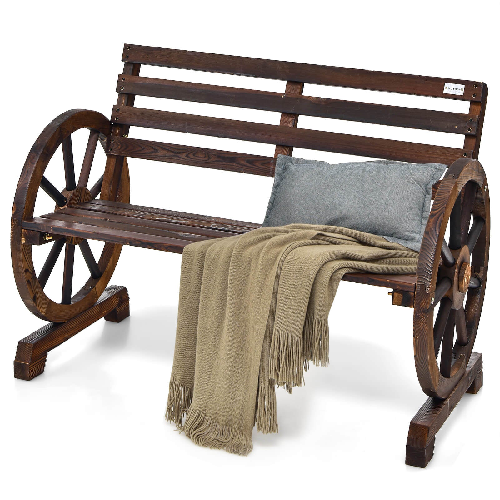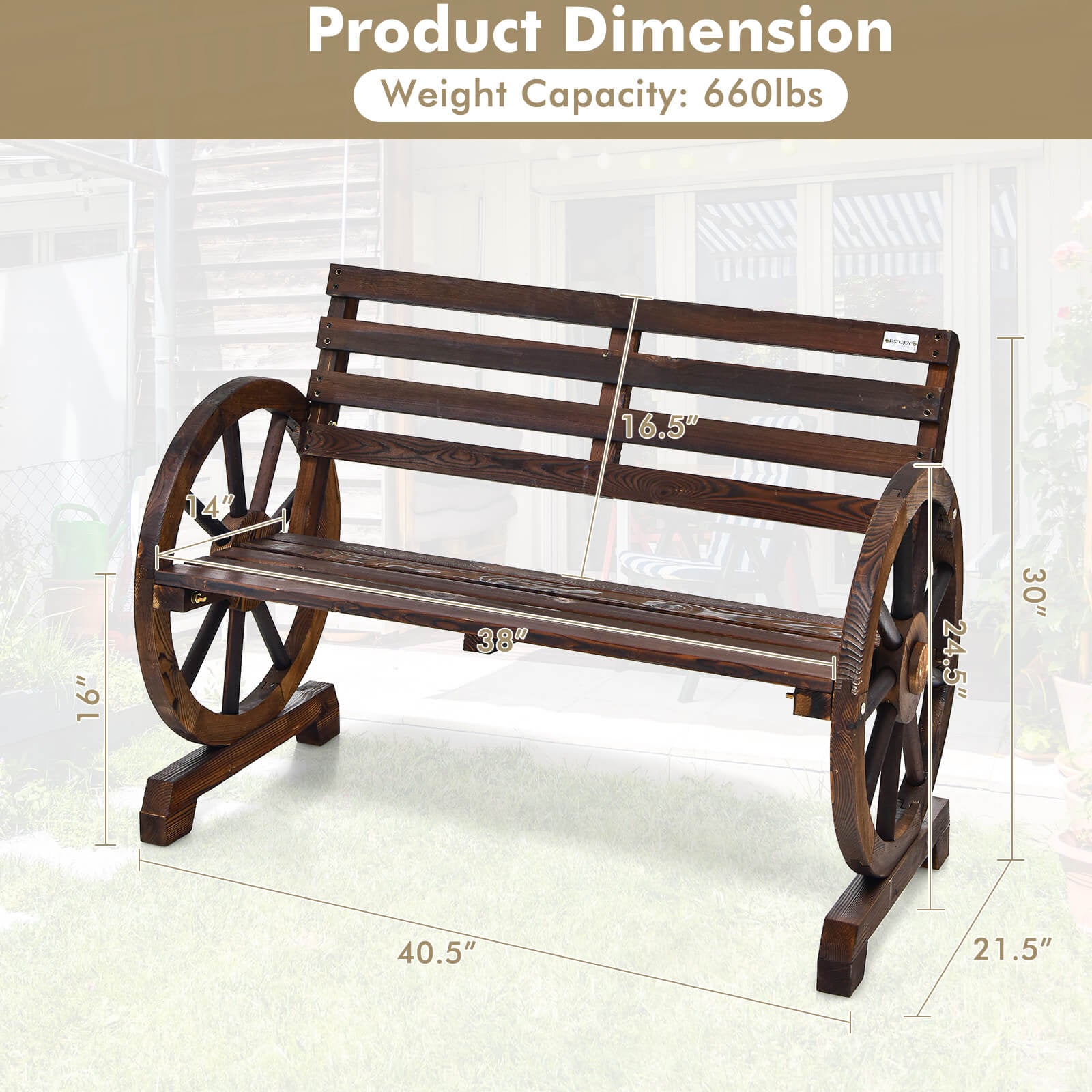 2-Person Outdoor Wooden Wagon Wheel Garden Bench-Brown