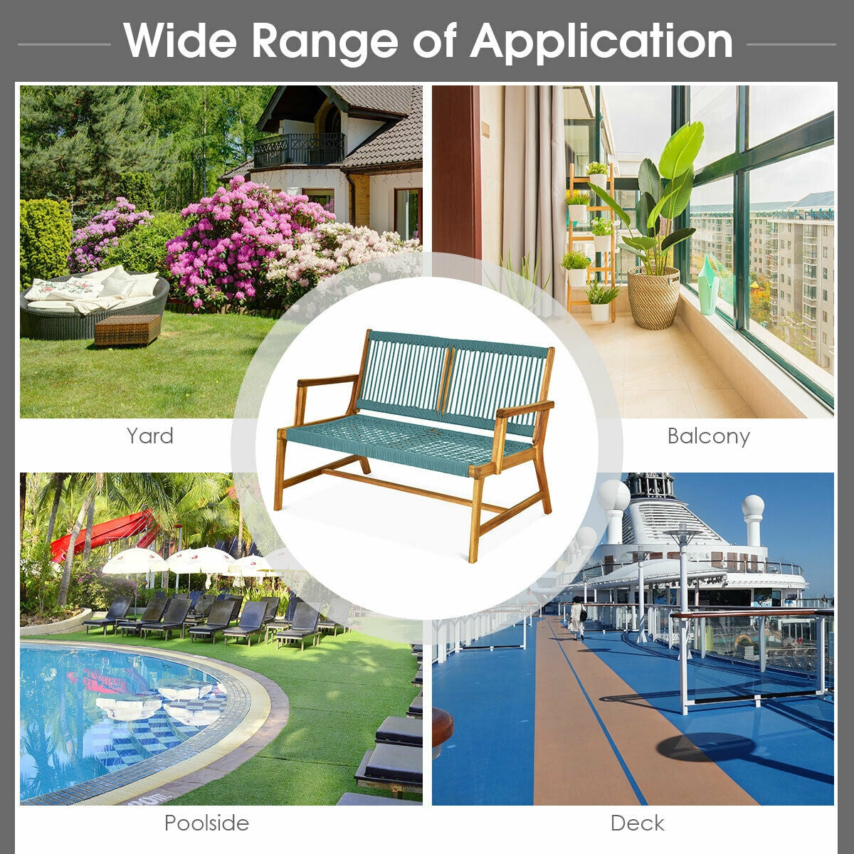 2-Person Acacia Wood Yard Bench for Balcony and Patio-Turquoise