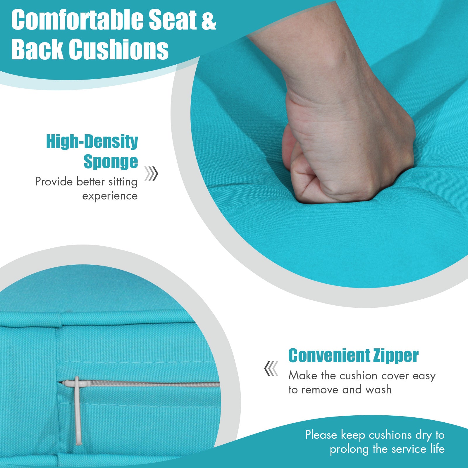 2-Person Patio PE Wicker Hanging Porch Swing Bench Chair Cushion 800 Pounds-Turquoise