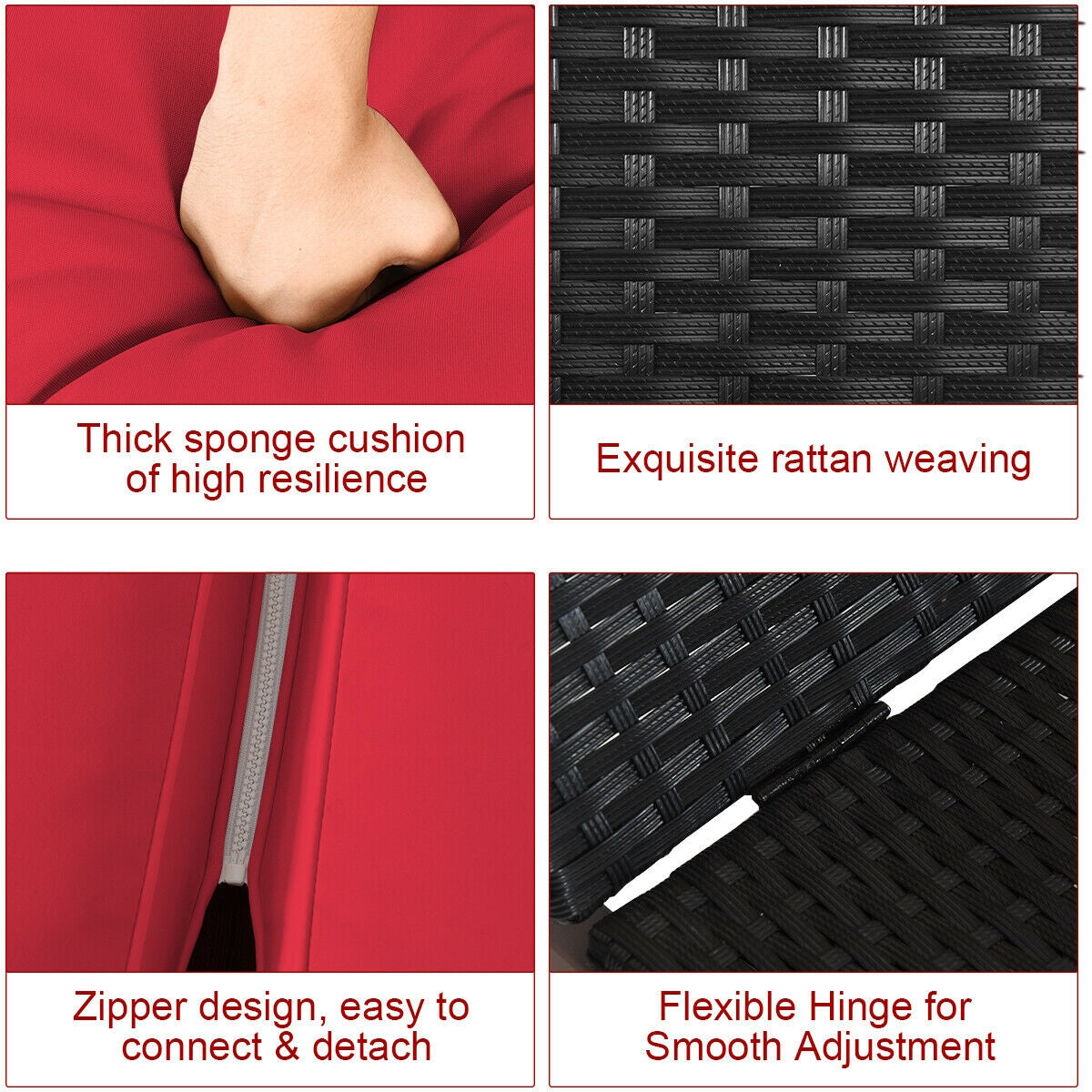 2-Person Patio Rattan Lounge Chair with Adjustable Backrest-Red