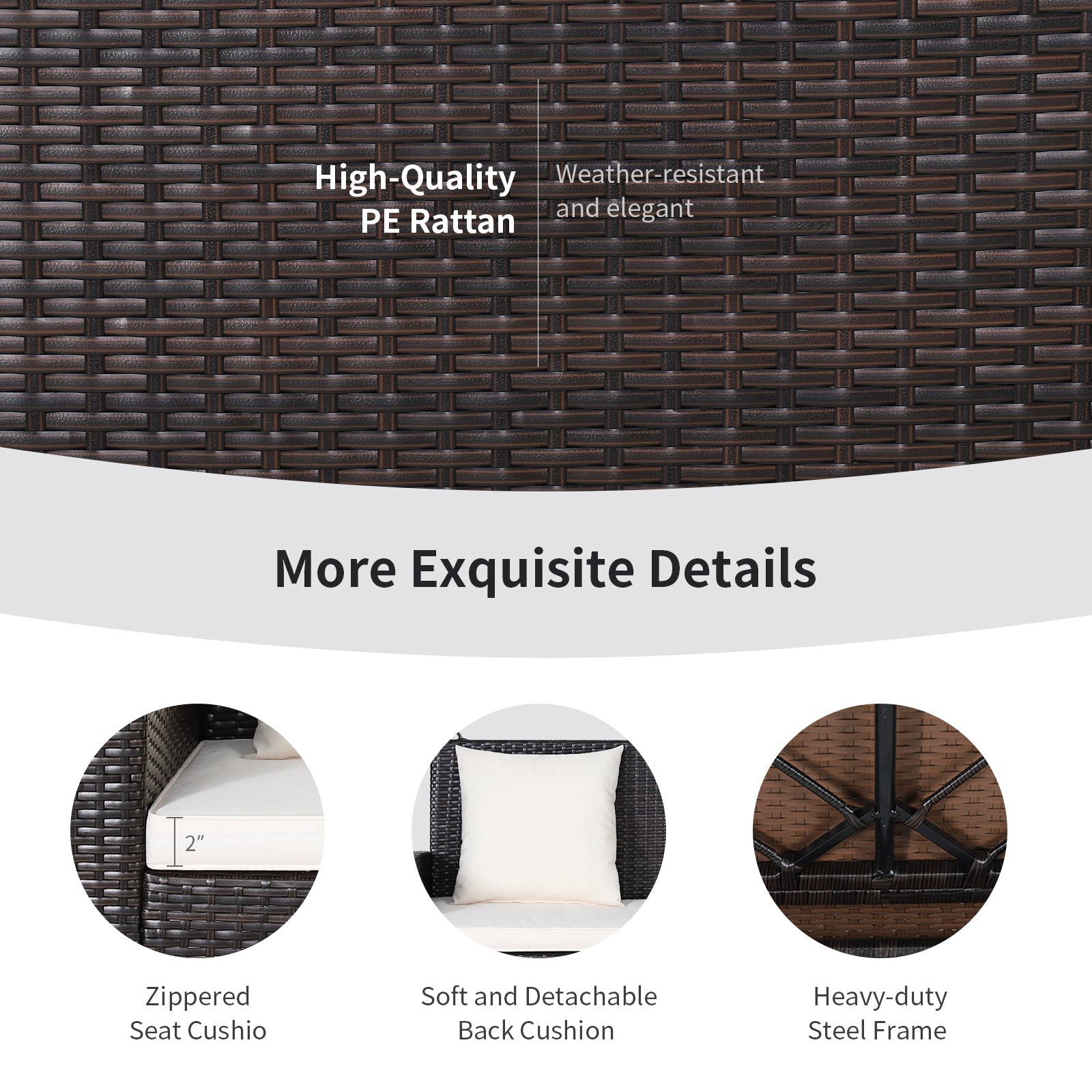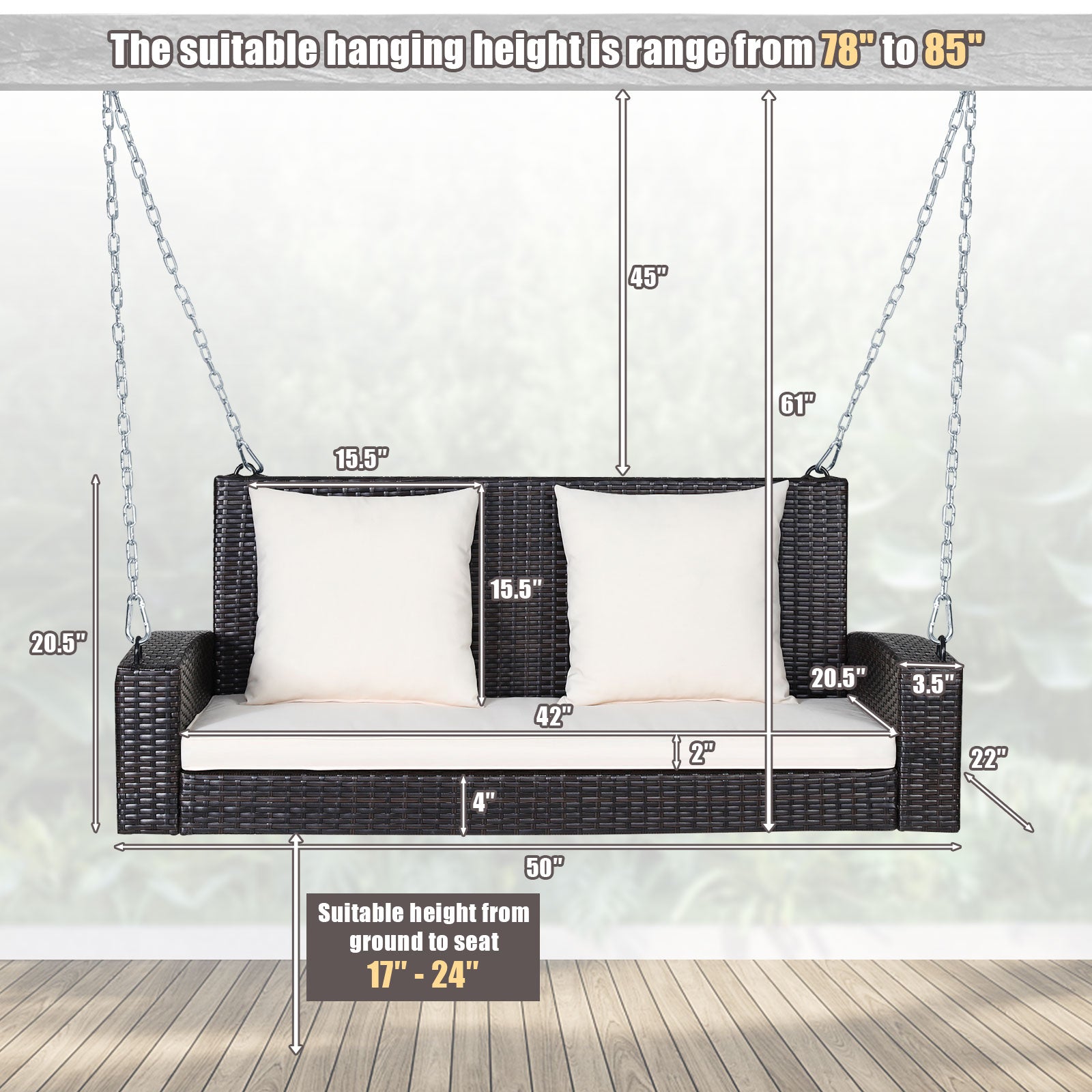 2-Person Patio Rattan Porch Swing with Cushions-White