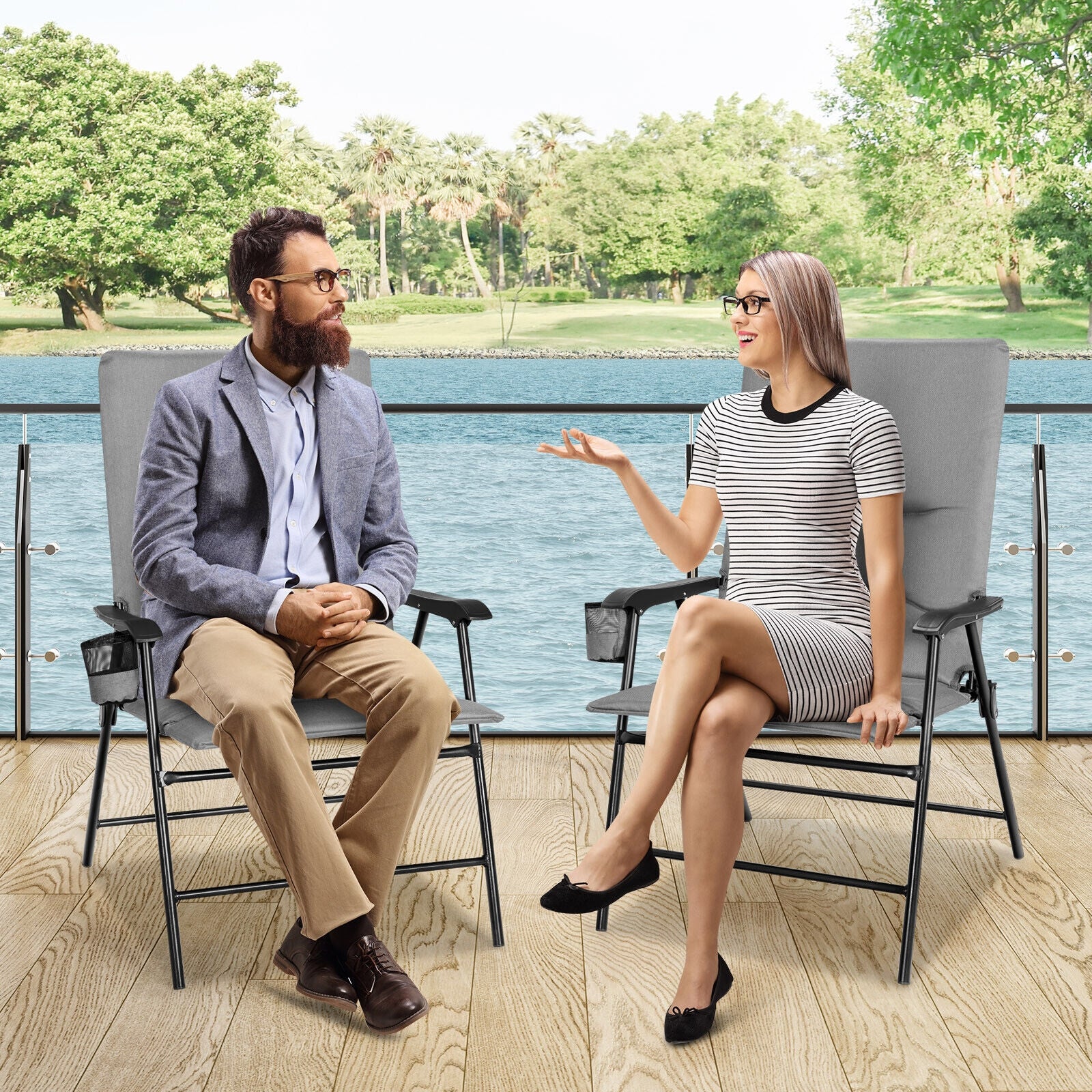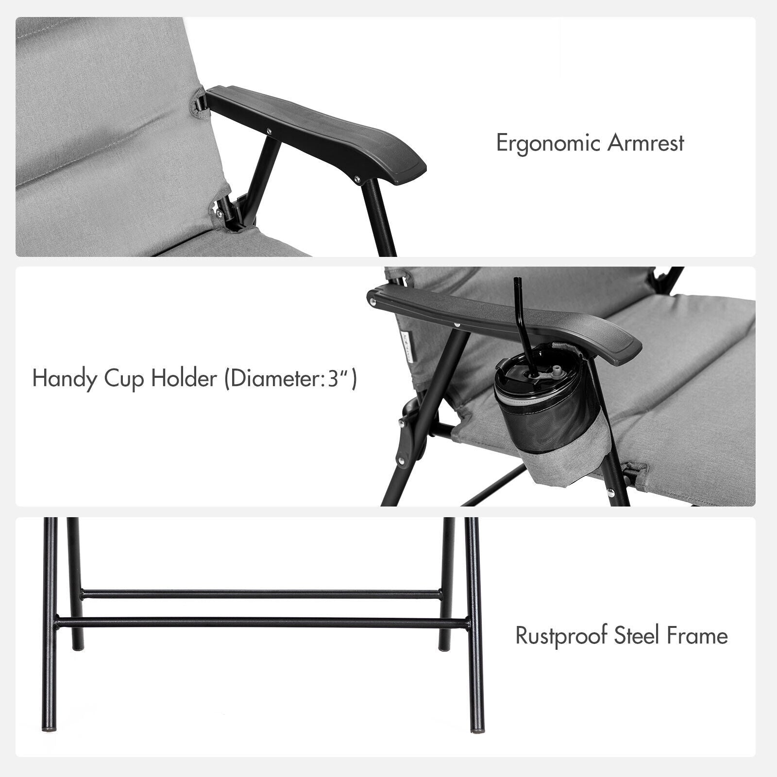 2 Pieces Patio Padded Folding Portable Chair Camping Dining Outdoor-Gray