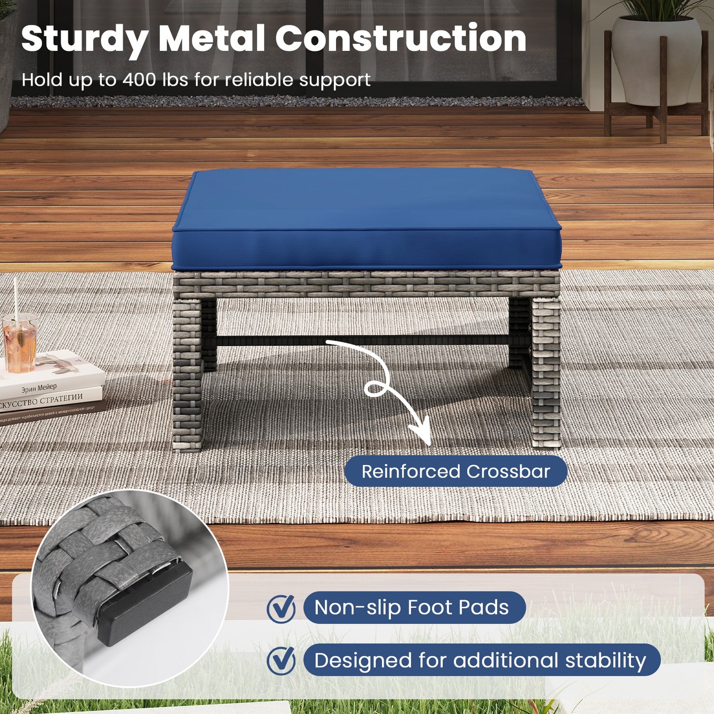 ● Multipurpose Design: Use these patio ottomans as footrests to put your feet up and relax after a long day or as extra seats when you have guests over. Plus they can easily transform into convenient coffee tables for your drinks or other items.