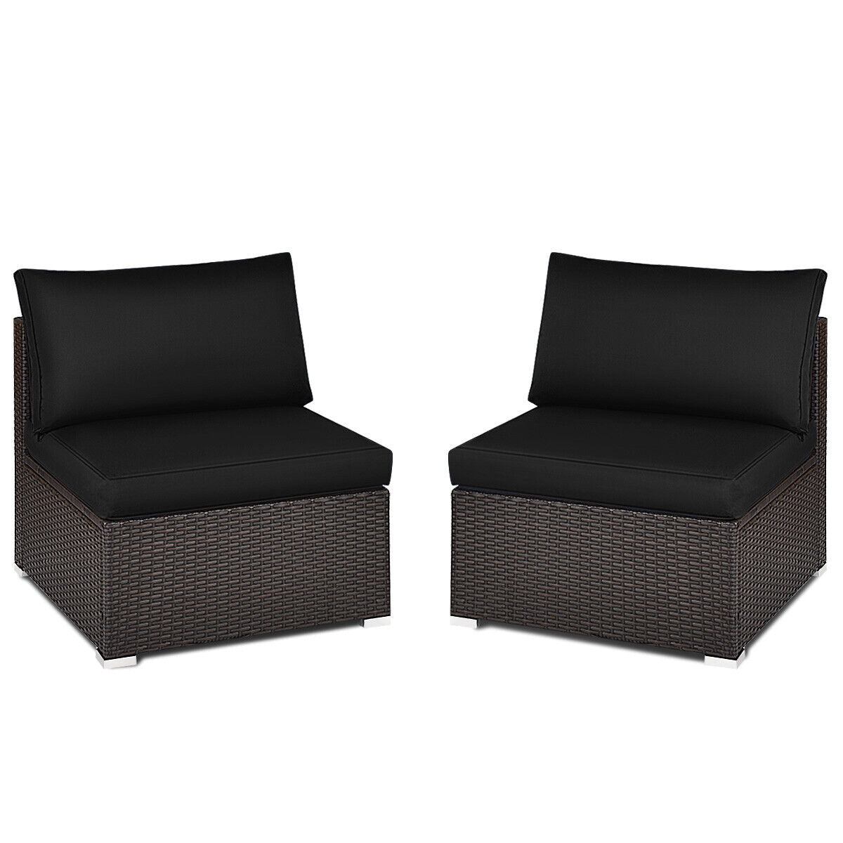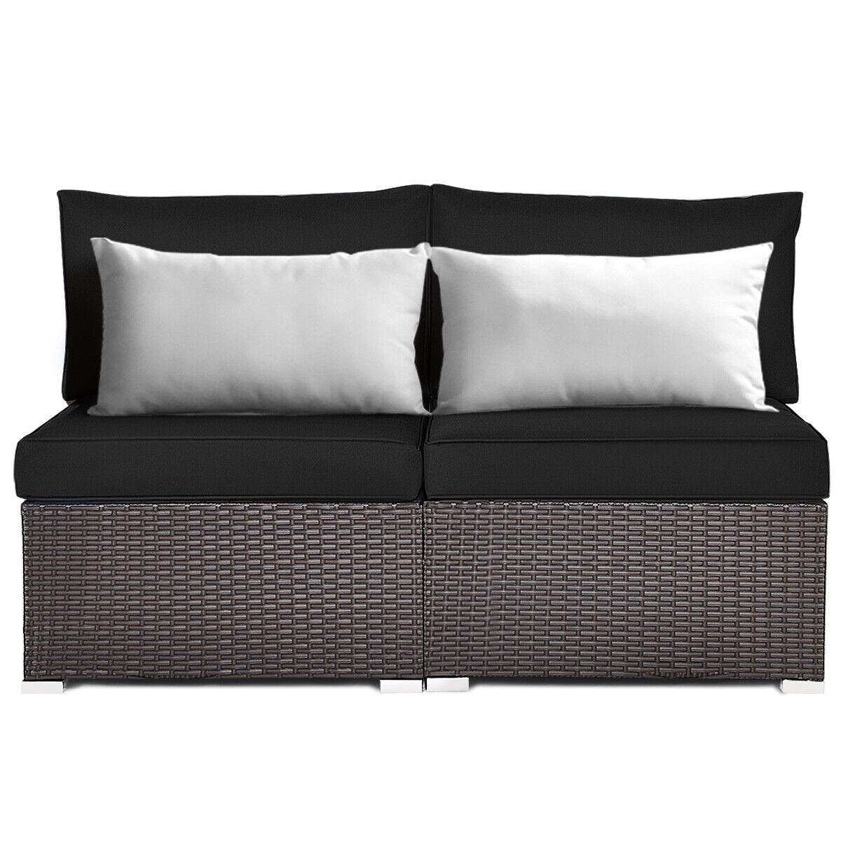 2 Pieces Patio Rattan Armless Sofa Set with 2 Cushions and 2 Pillows-Black