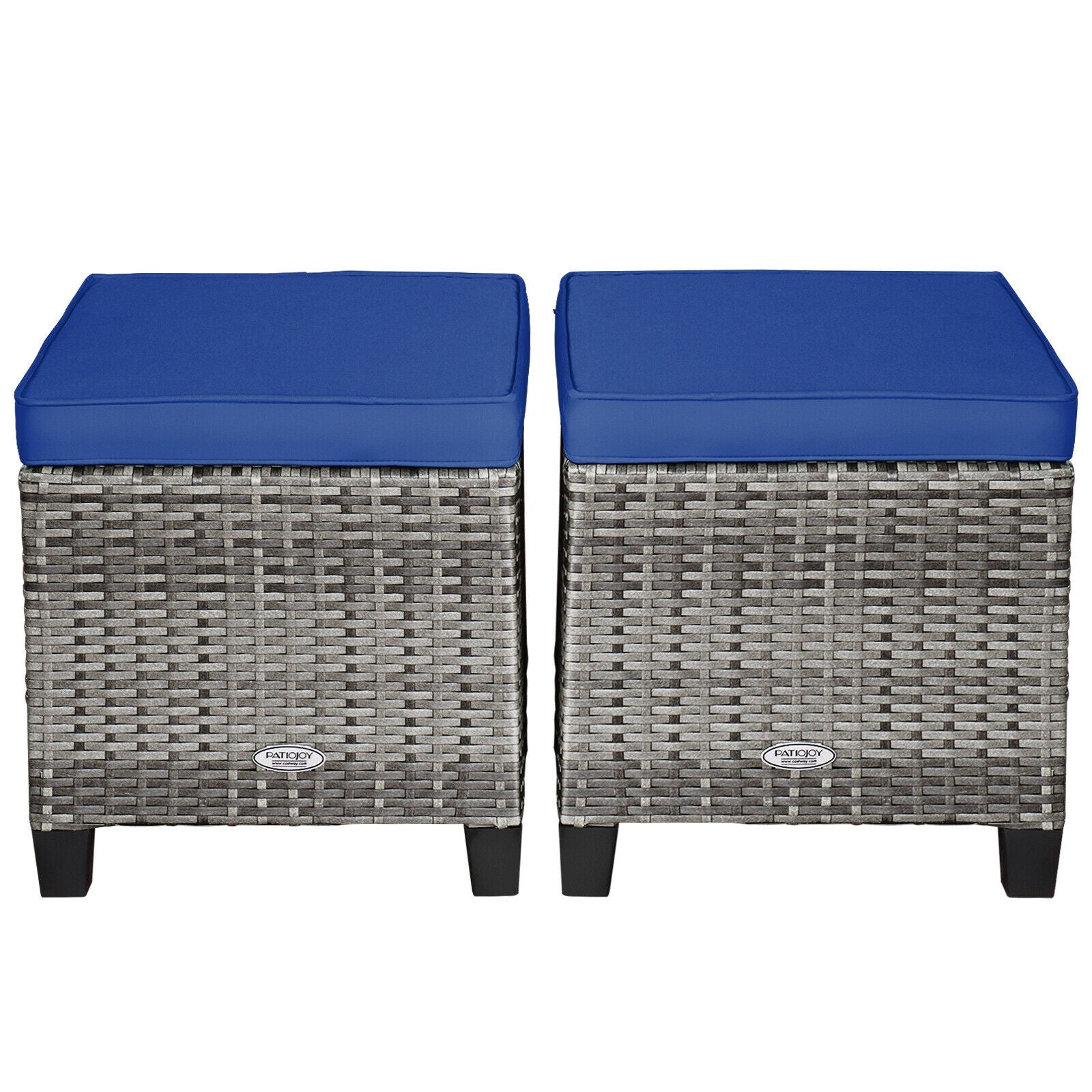 2 Pieces Patio Rattan Ottoman Seat with Removable Cushions-Navy