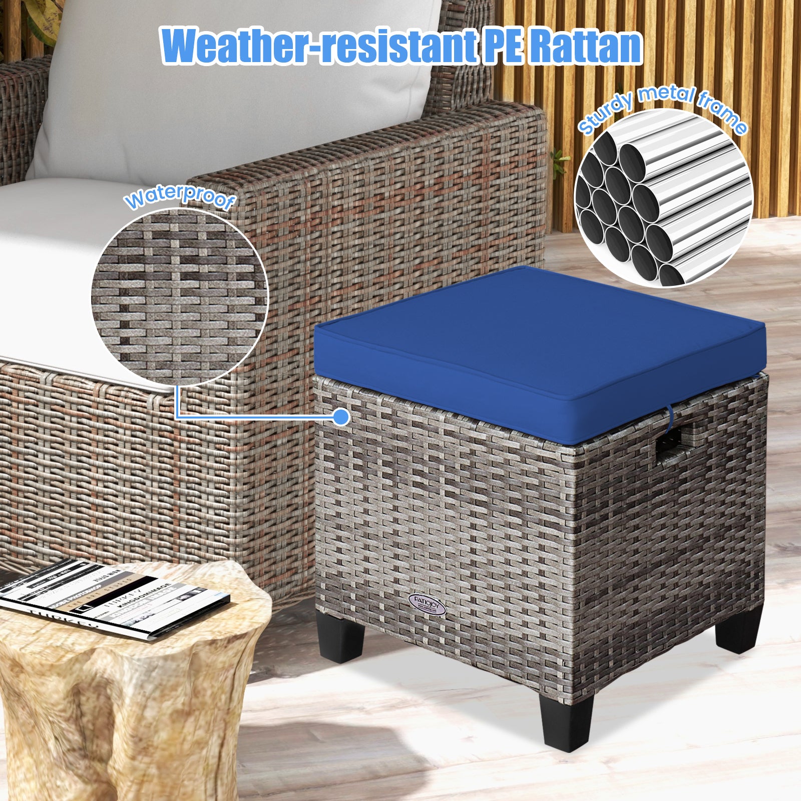 ● Selected Materials: Made of weather-resistant PE rattan and anti-rust steel frame these high quality patio ottomans ensure long service time and come with strong loading capacity up to 350 lbs (for each ottoman). Meanwhile the foot pads are anti-slip which add extra stability.