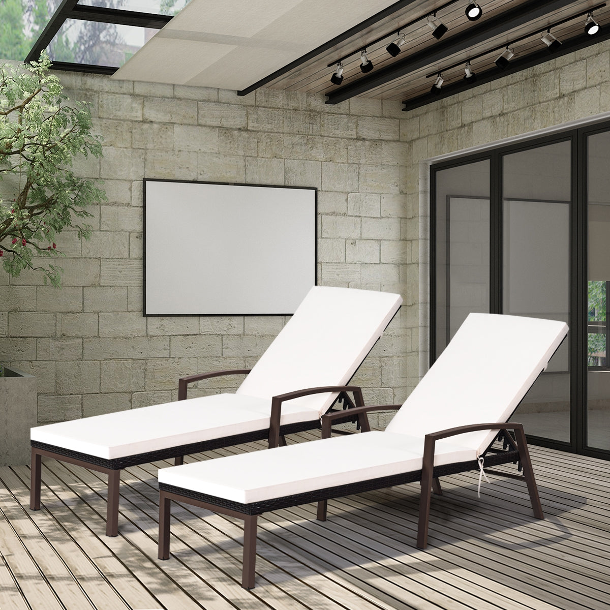 2 Pieces Patio Rattan Reclining Chaise Lounge Chair with Cushion and Armrest-Red & White