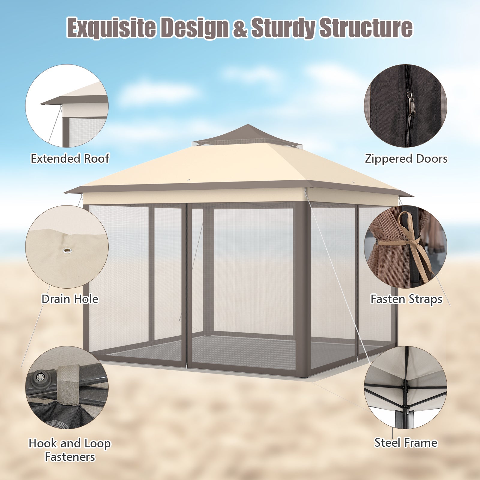 2-Tier 11 x 11 Feet Pop-Up Gazebo Tent Portable Canopy Shelter Carry Bag Mesh