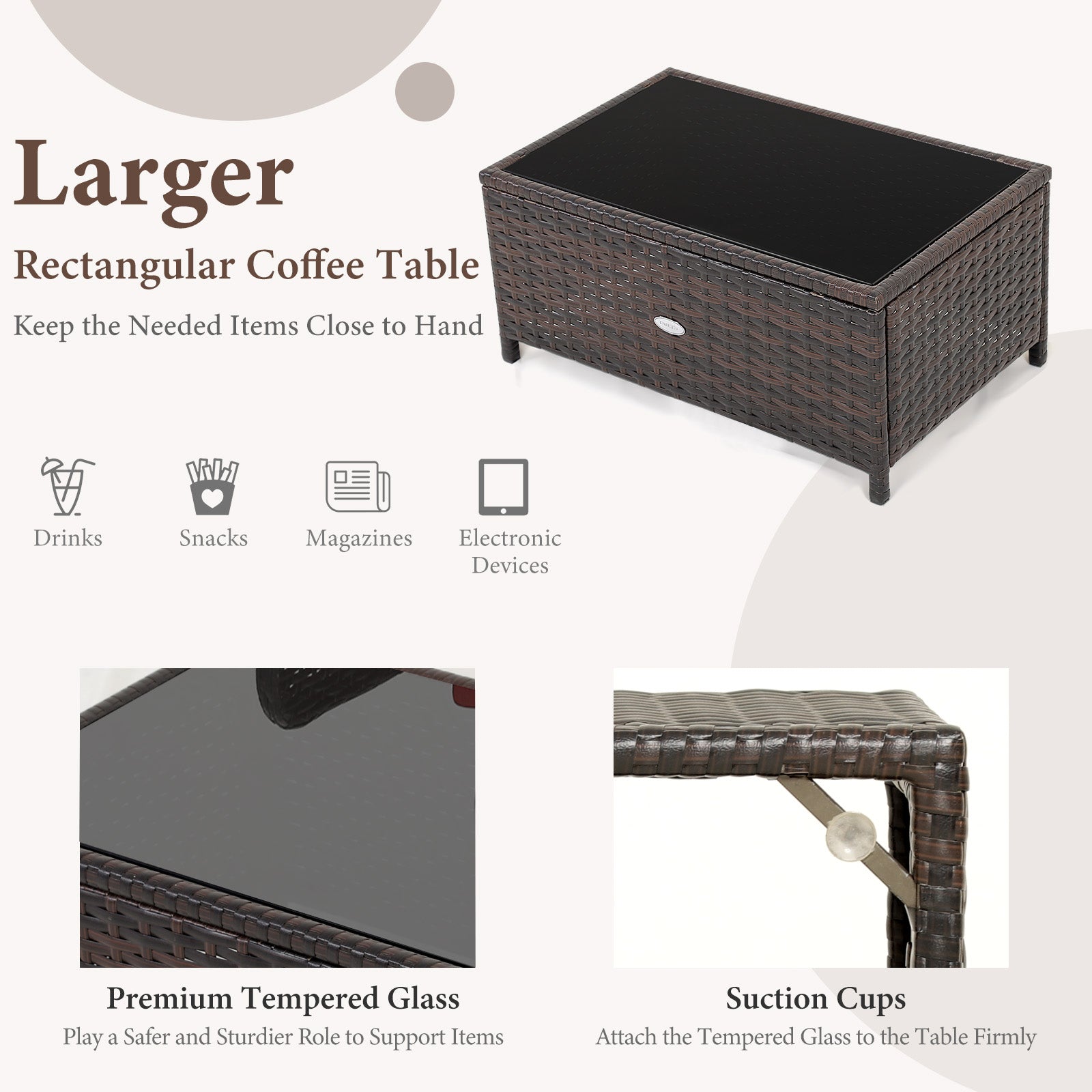 ● Practical Coffee Table and Stylish Design: This wicker sofa set comes with a large coffee table and the tabletop is made of rust-resistant powder-coated steel. What's more the simple design and exquisite rattan style make this sofa set a bright spot for any outdoor environment including the patio garden lawn or backyard.
