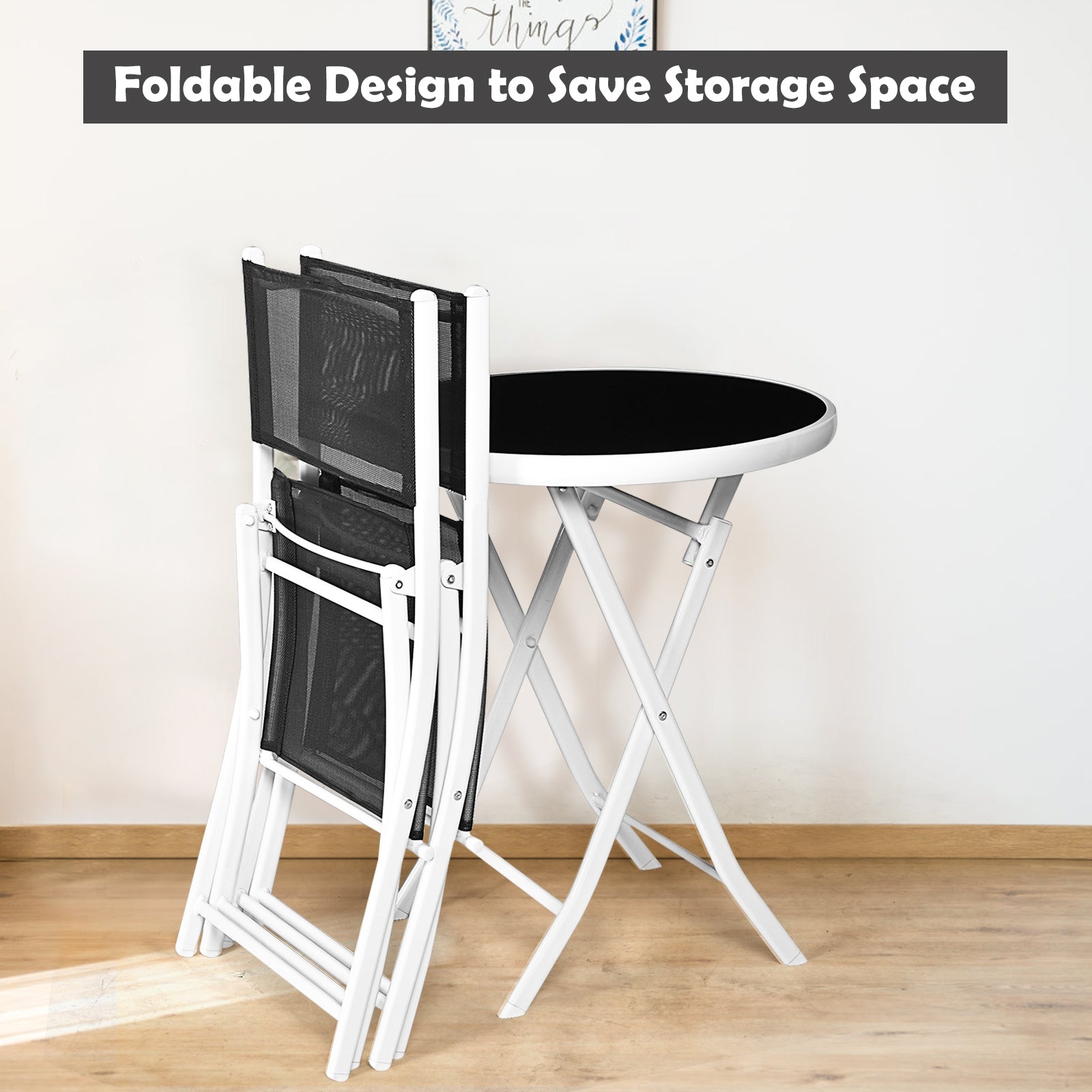 3 PCS Folding Bistro Table Chairs Set Garden Backyard Patio Furniture Black New-Black