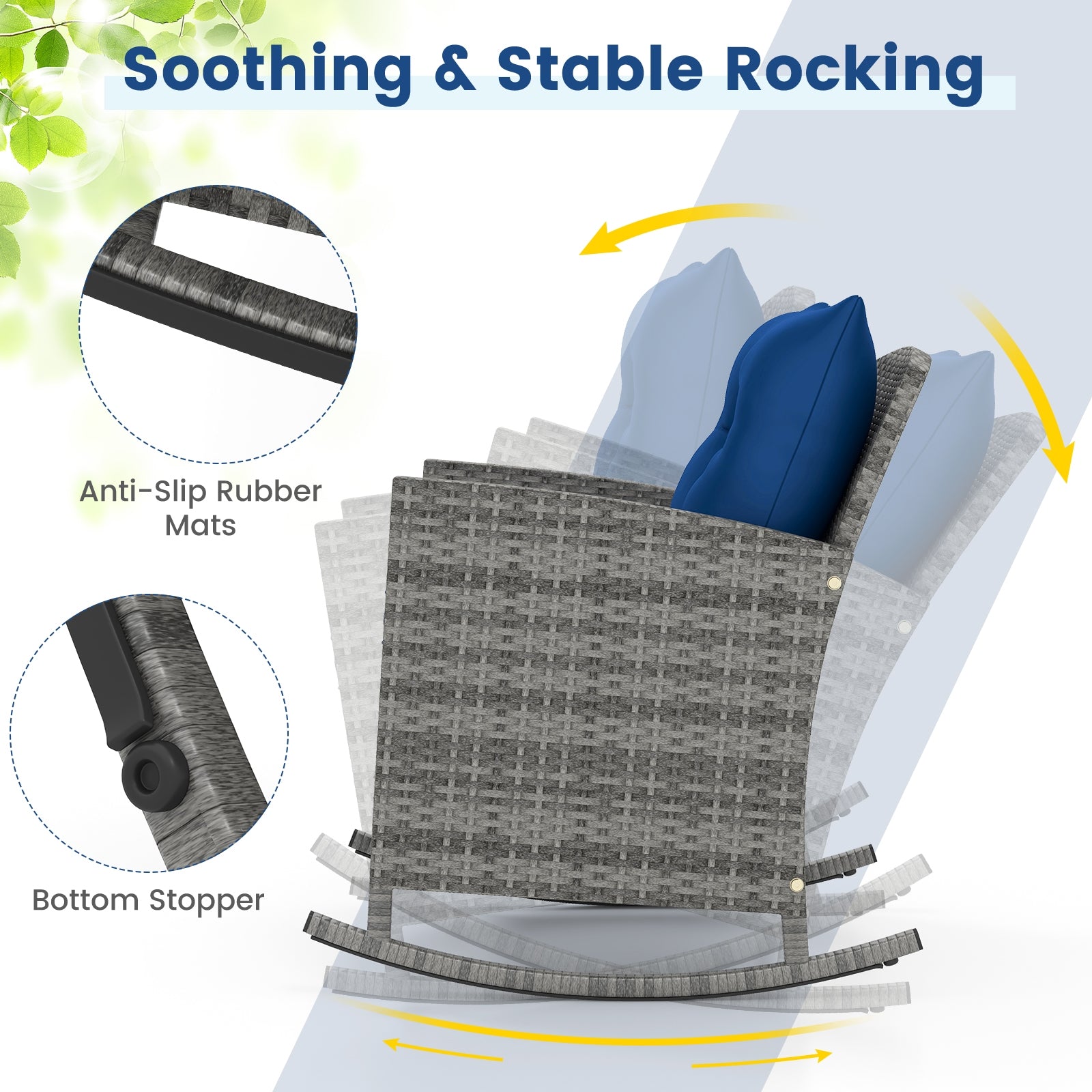 ● Relaxing Rocker Design: Enjoy a gentle sway with the well-constructed rocker chairs which is designed with bottom stoppers accompanied by non-slip rubber mats for a steady glide. The spacious seating and high back also offer an unparalleled leisure experience.