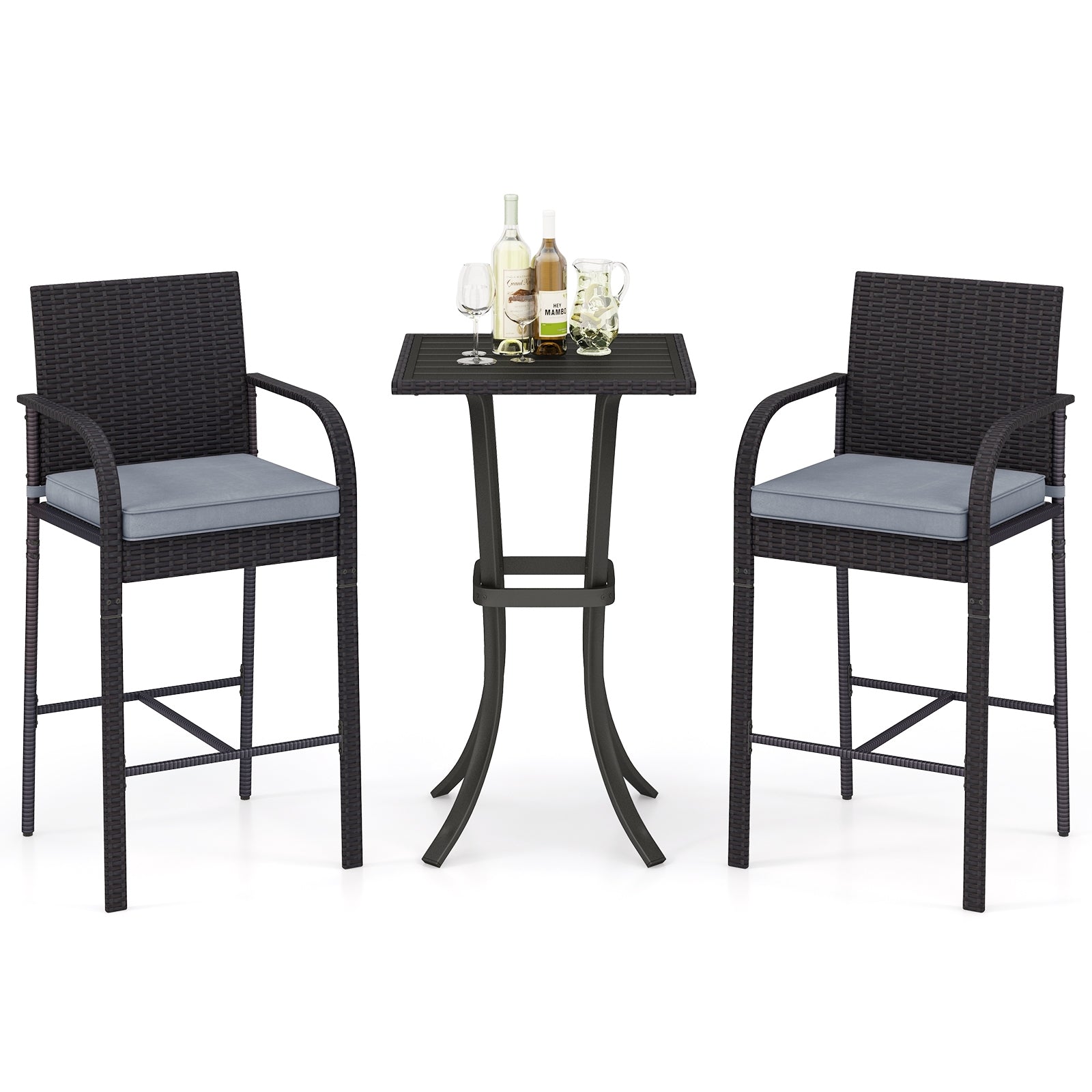 3-Piece Patio Wicker Rattan Bar Height Chairs and Square Table Set-Black
