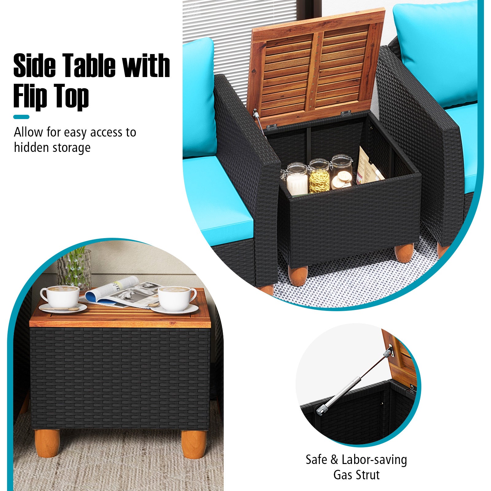 3 Pieces Outdoor Patio Rattan Furniture Set-Turquoise