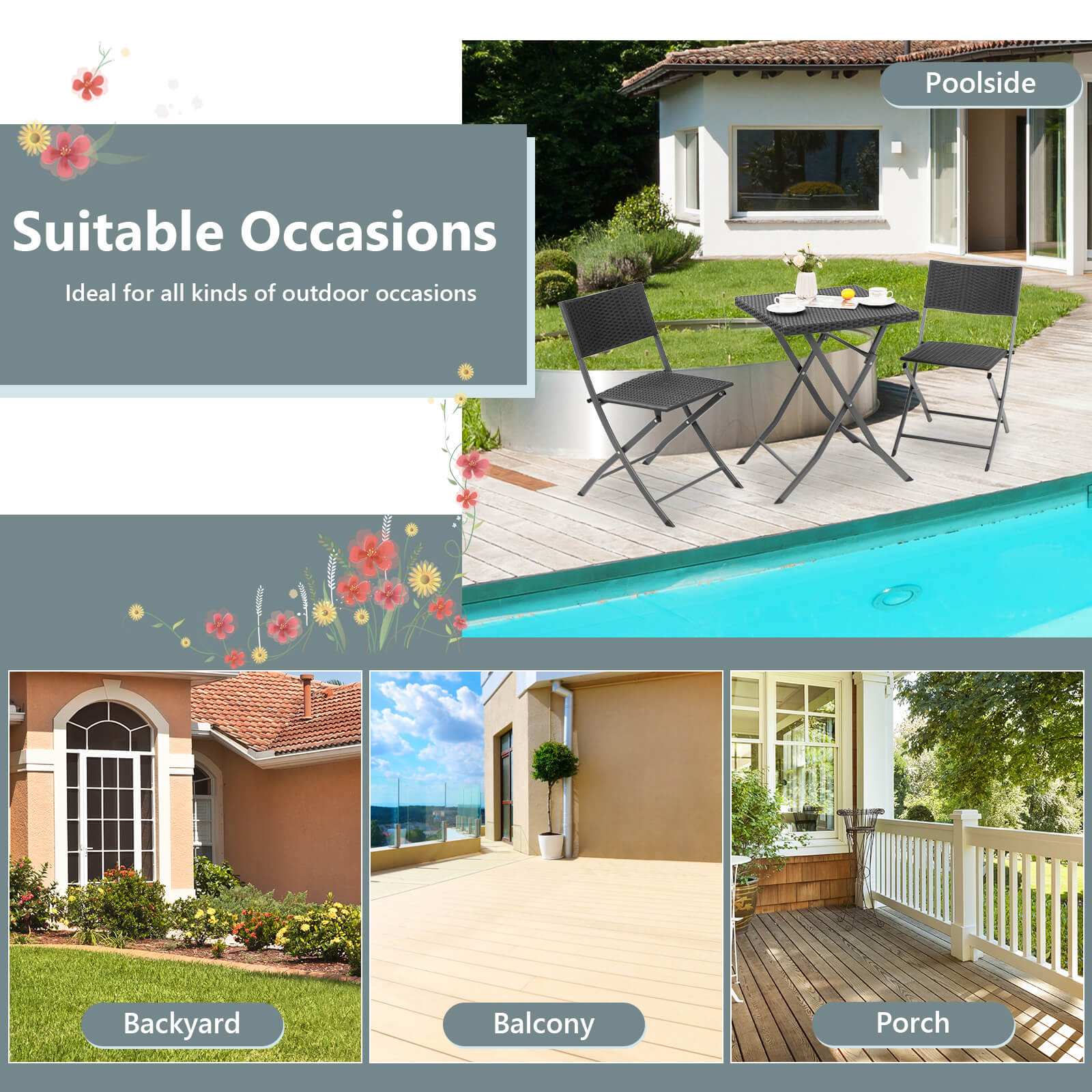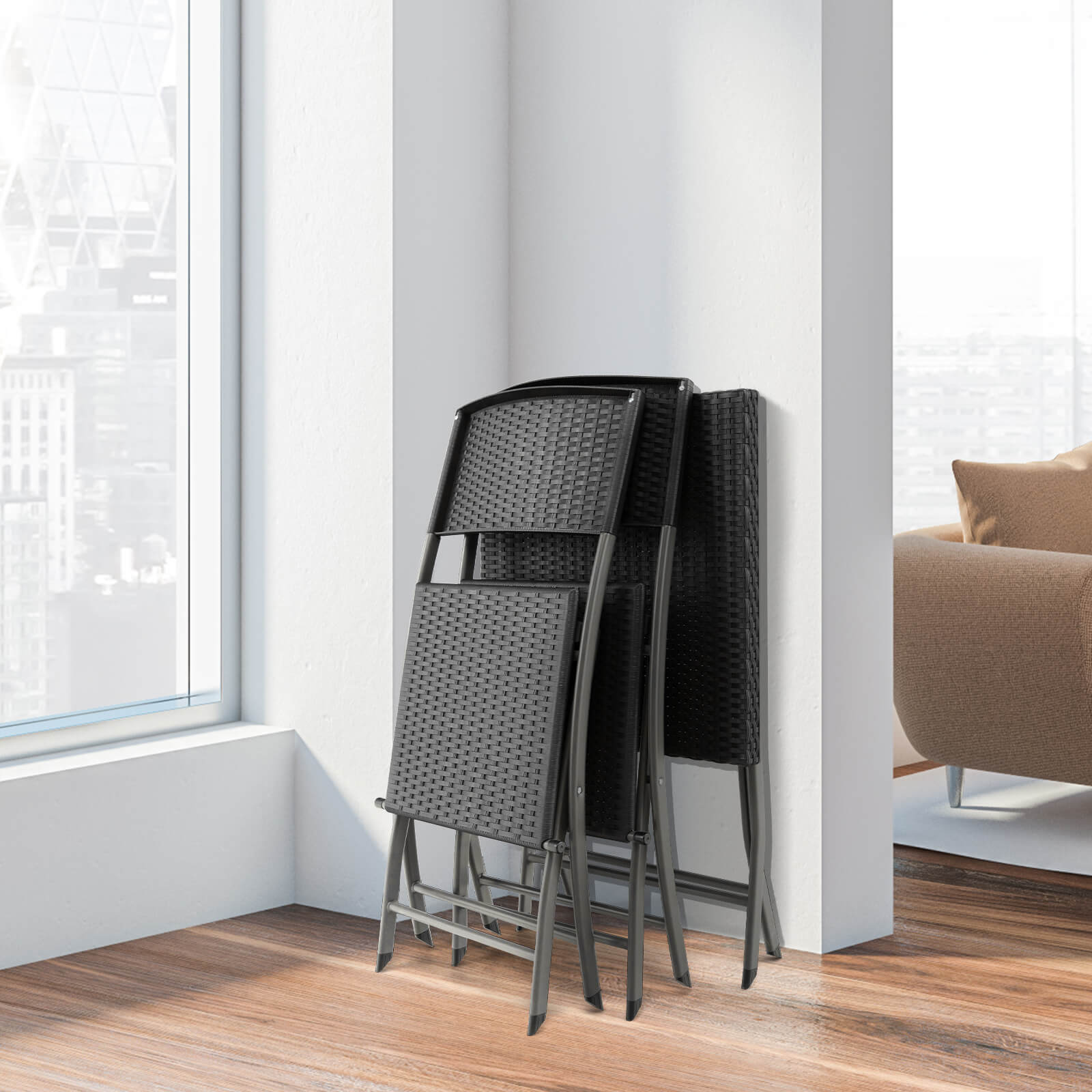 3 Pieces Patio Bistro Set with Folding Wicker Chairs and Table-Black