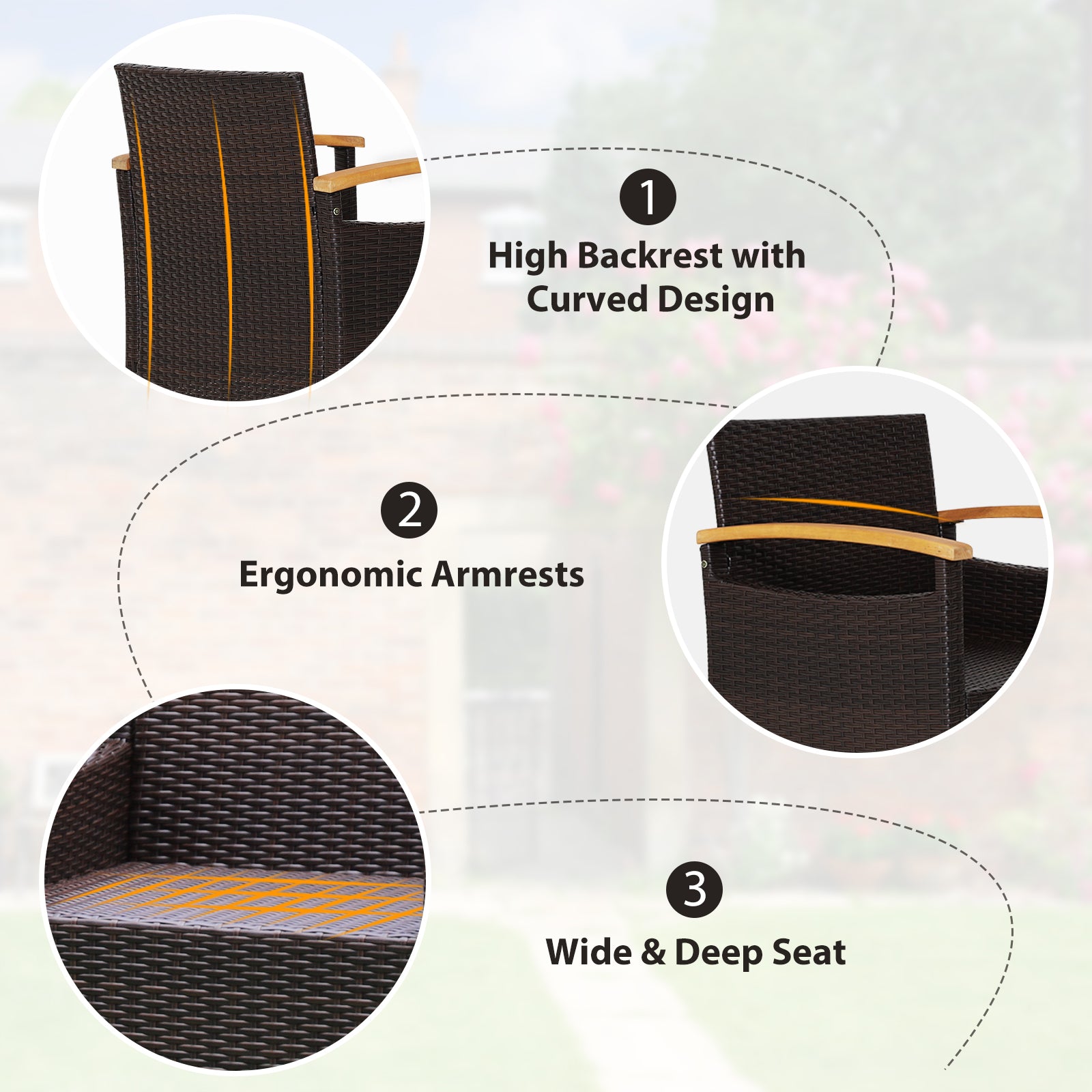 3 Pieces Patio Rattan Furniture Set with Removable Cushions-Beige