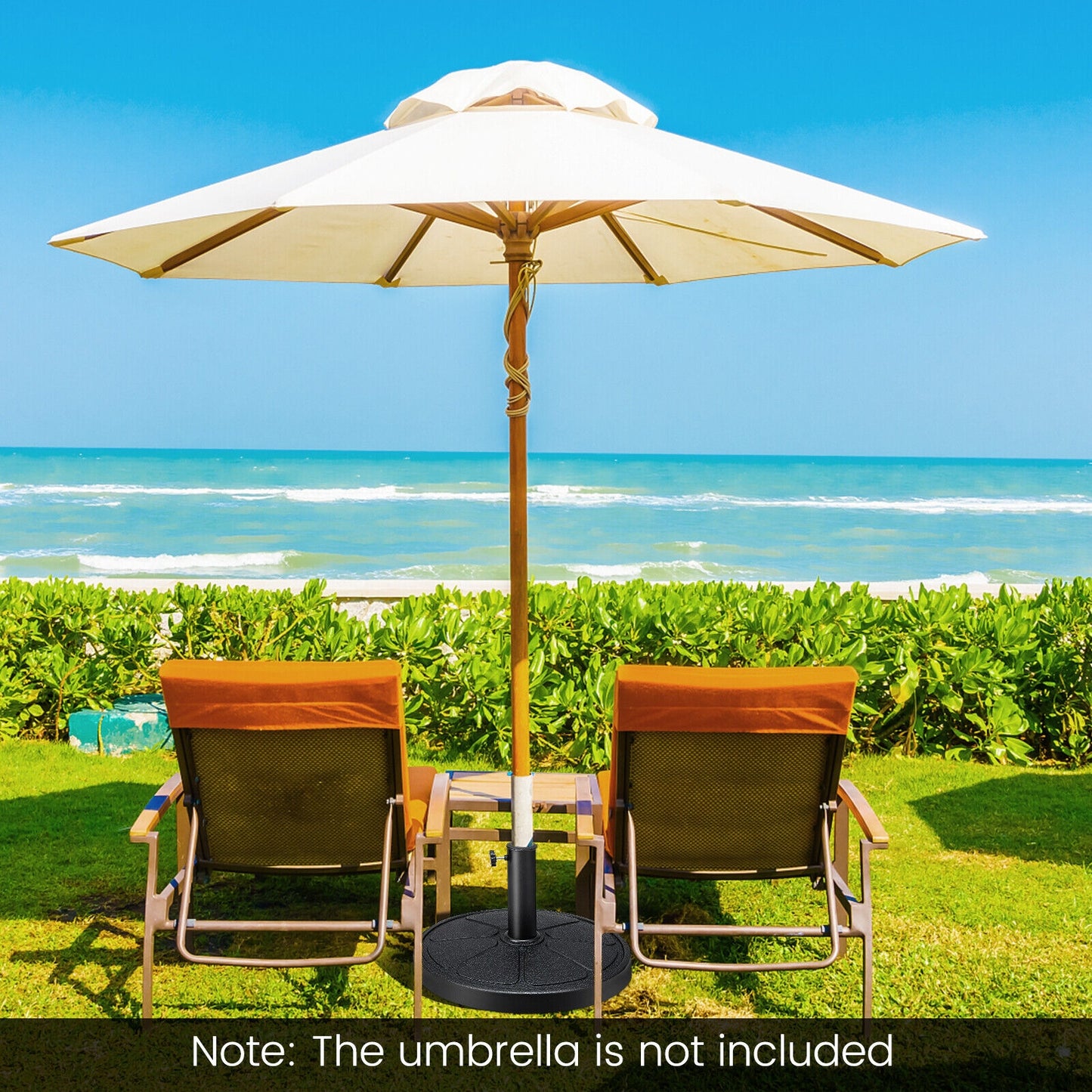 ● Robust and Durable Material: The patio umbrella base is made of robust resin material which is waterproof anti-aging fade-resistant and ultraviolet-resistant ensuring long-term outdoor use. And it adopts a high-strength powder-coated metal pole which is not easy to rust peel or chip.