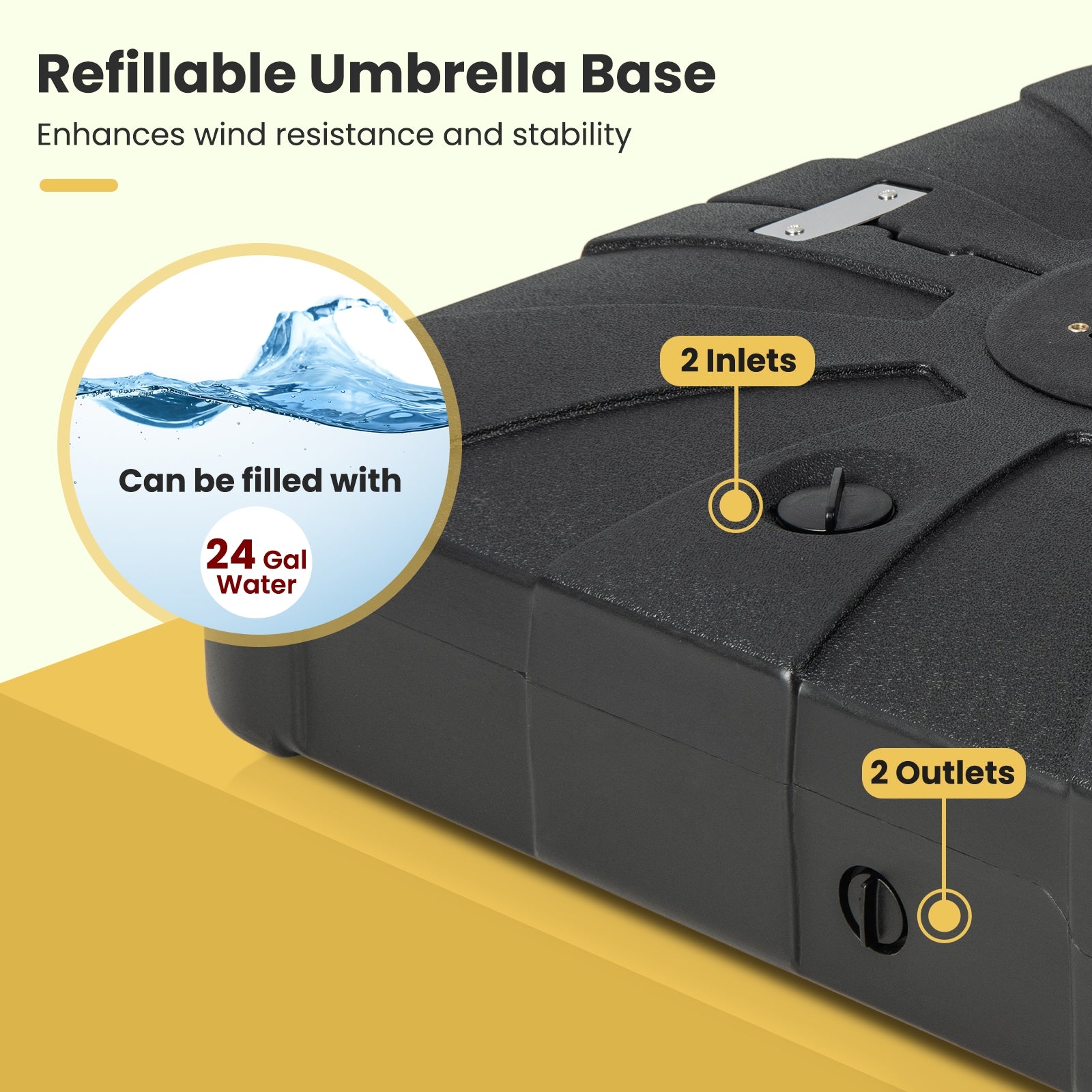 ● Fillable Design: The refillable umbrella base is designed with 2 reservoirs that can be filled with 90 L/24 Gal water keeping your umbrella upright during windy conditions. And it comes with 2 inlets and 2 outlets bringing convenience for adding or draining water.