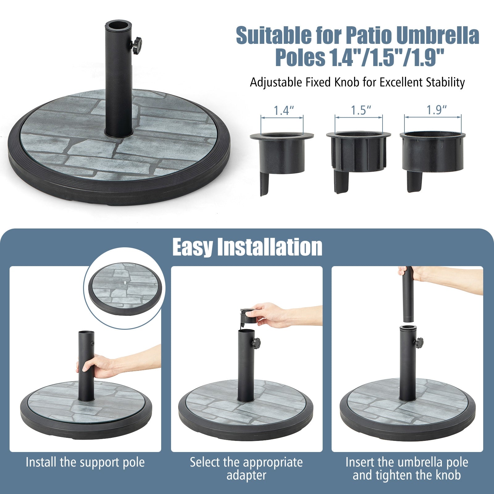 ● Fits 6-10 FT Umbrella: The patio umbrella base is equipped with 3 adapters and a metal support pole which can accommodate most 6-10 ft market umbrellas and patio table umbrellas. It is suitable for 1.4" 1.5" or 1.9" patio umbrella poles.