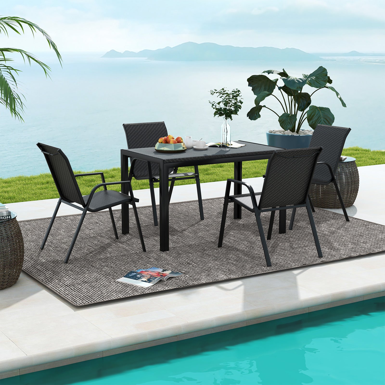 ● Wide Outdoor Application: With curved and ergonomic seat and back each patio chair will offer you optimal comfort. And the four chairs will be perfect for different outdoor occasions such as backyard poolside porch and so on.