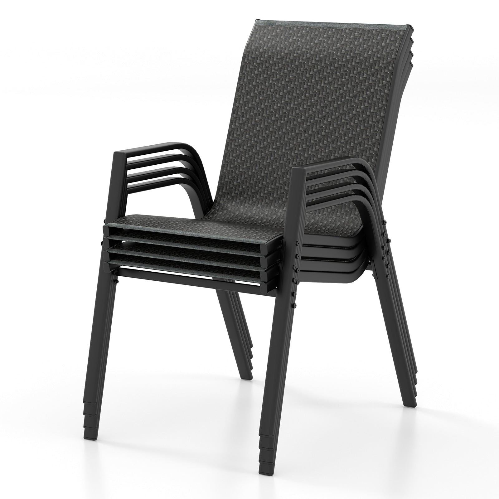 ● Convenient Stackable Design: When the gathering or meal is over you can stack the 4 patio chairs up and down which is space-saving for storage. And thus you will have more space to enjoy other outdoor activities.