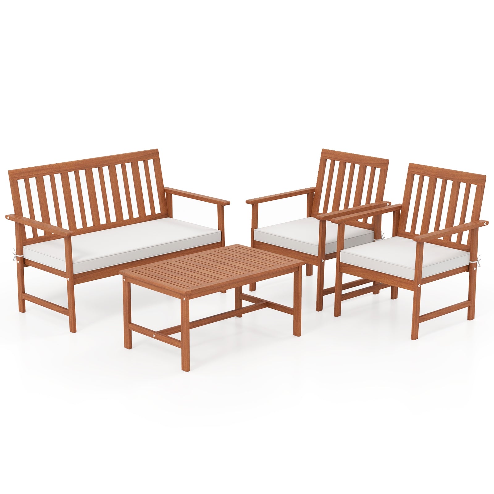 4 Pieces Acacia Wood Furniture Set with Seat Cushions and Robust Wood Frame-White