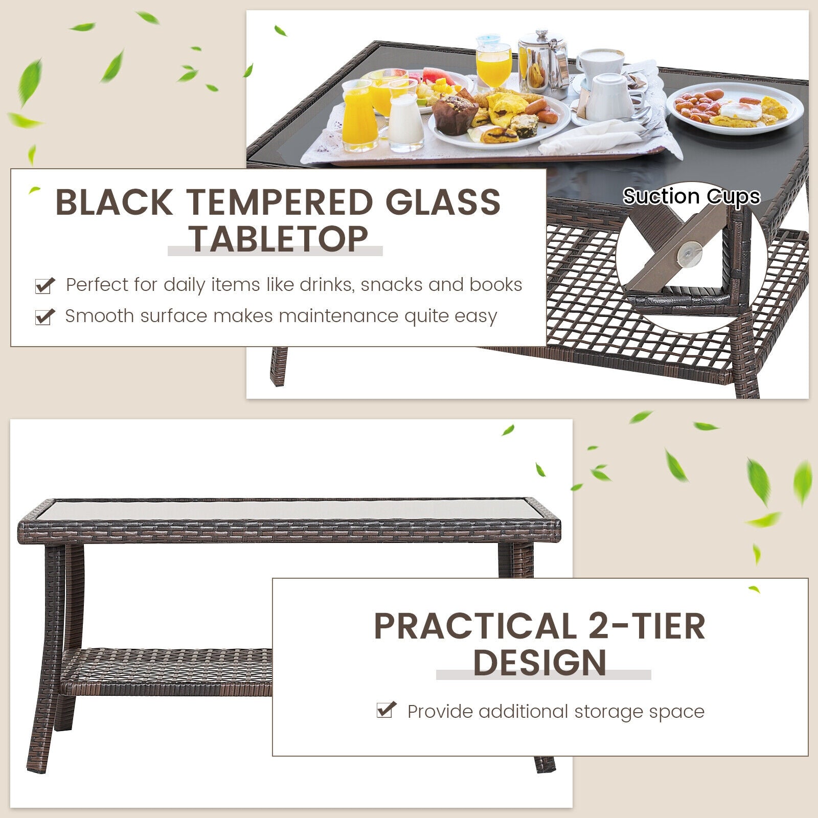 ● Practical Coffee Table with Lower Shelf: The high-quality coffee table with tempered glass tabletop provides enough space for drinks meals decorations and more. The lower shelf offers more storage space and the non-slip foot pads ensure added stability. The load-bearing of the tabletop and the lower shelf is 110lbs and 22lbs.